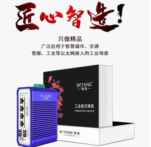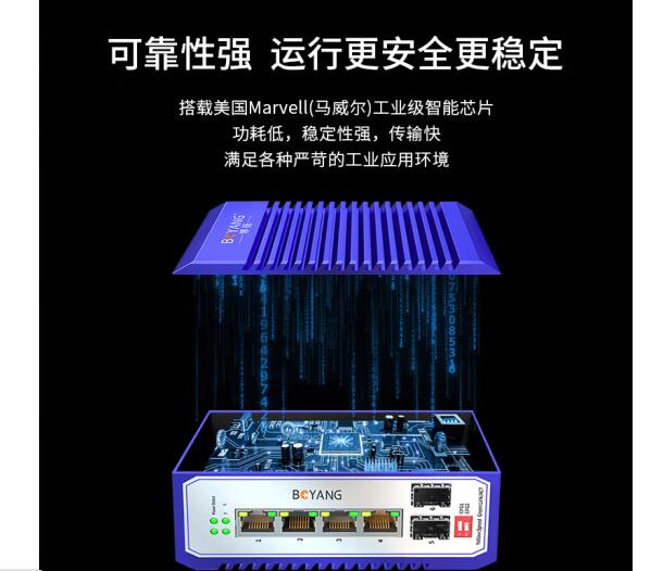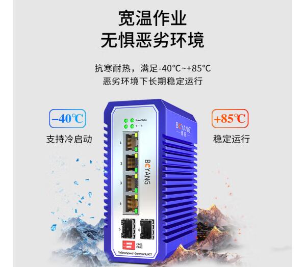 博扬 工业级环网交换机 POE管理型千兆二光四电SFP 宽温导轨式VLAN以太网光纤收发器 含电源不含模块BY-ISMG204P*1台*合格证