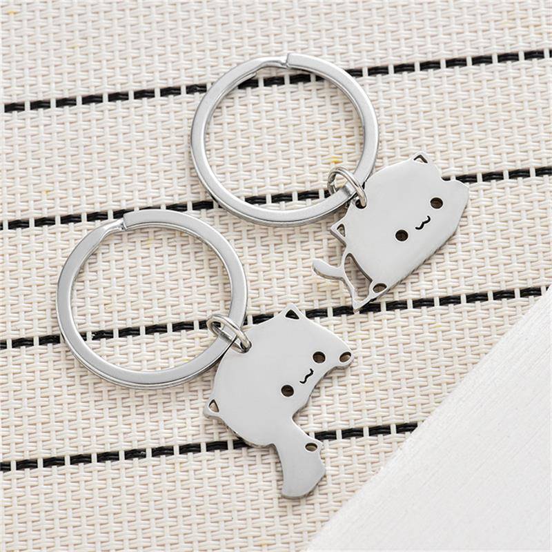 스테인레스 스틸 귀여운 고양이 키 체인 창조적 인 여자 친구 커플 만화 고양이 믹스 가방 교수형 선물