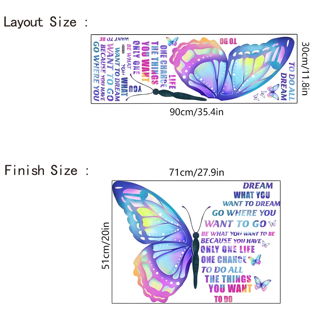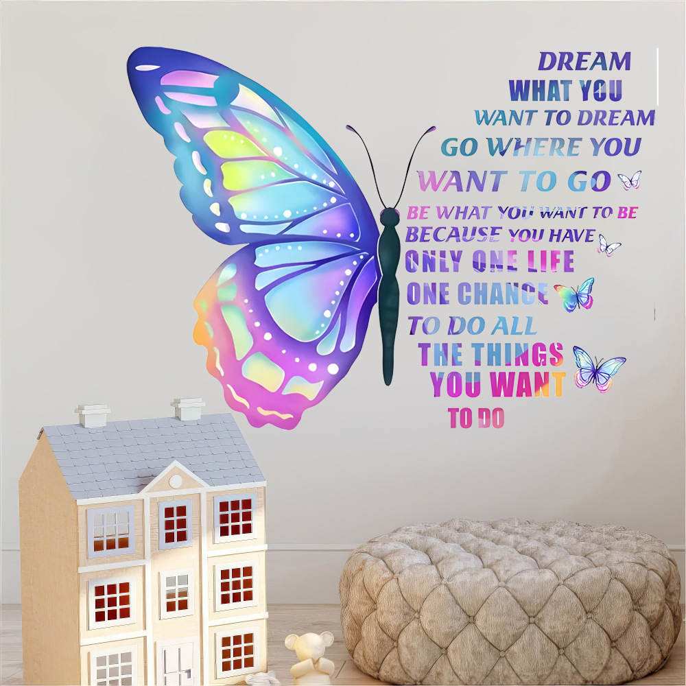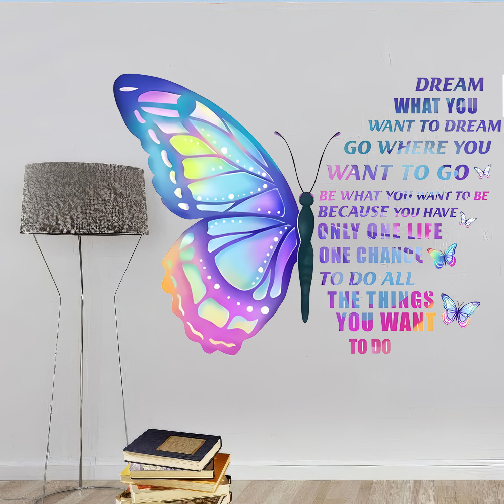 대외 무역 다채로운 나비 벽 스티커 이동식 PVC 벽 스티커 침실 거실 배경 벽 홈 장식 크로스 테두리스토어 가기