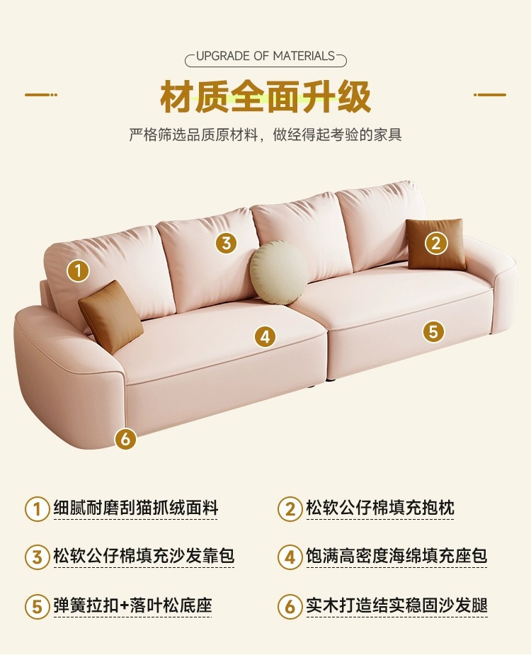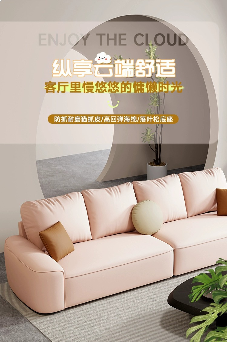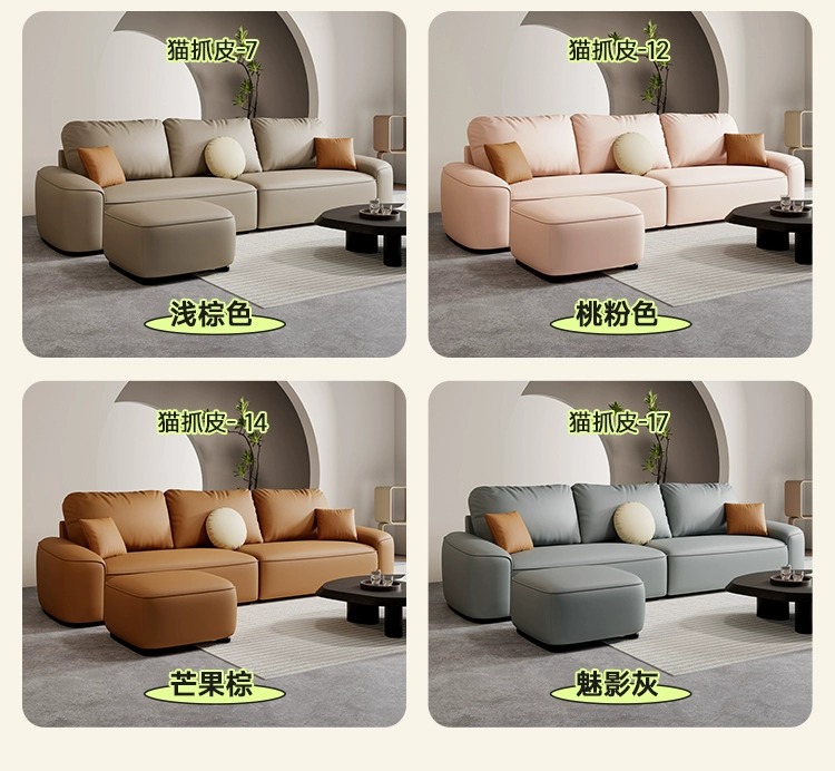 현대 간단한 방수 안티 스크래치 고양이 클로 가죽 소파 인터넷 인기있는 거실 작은 아파트 노르딕 스트레이트 행 가죽 레저 소파스토어 가기