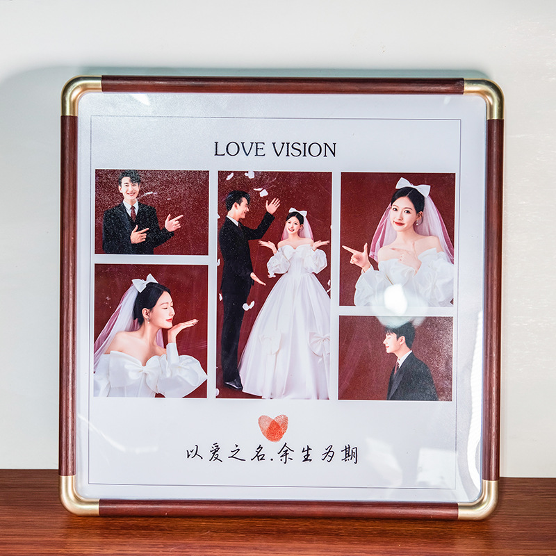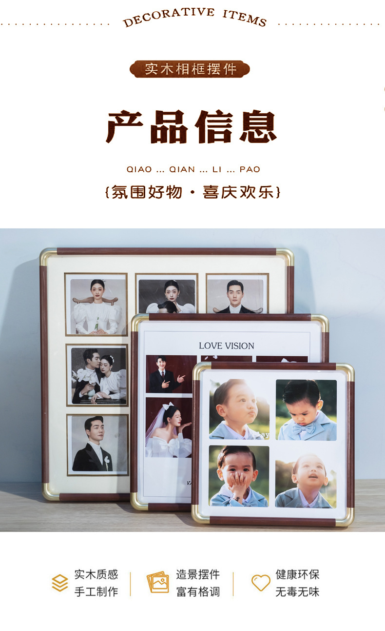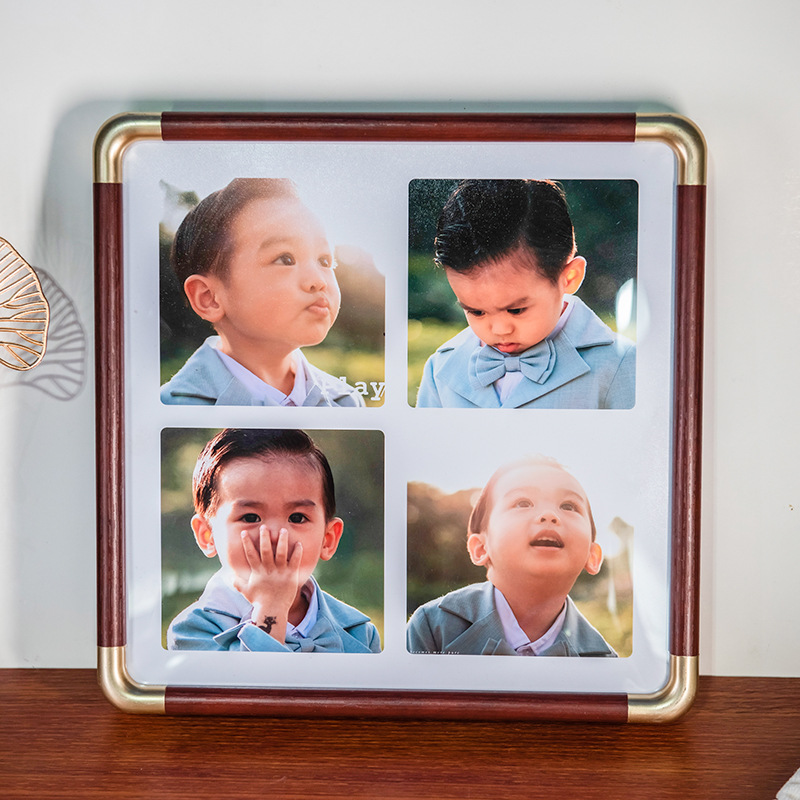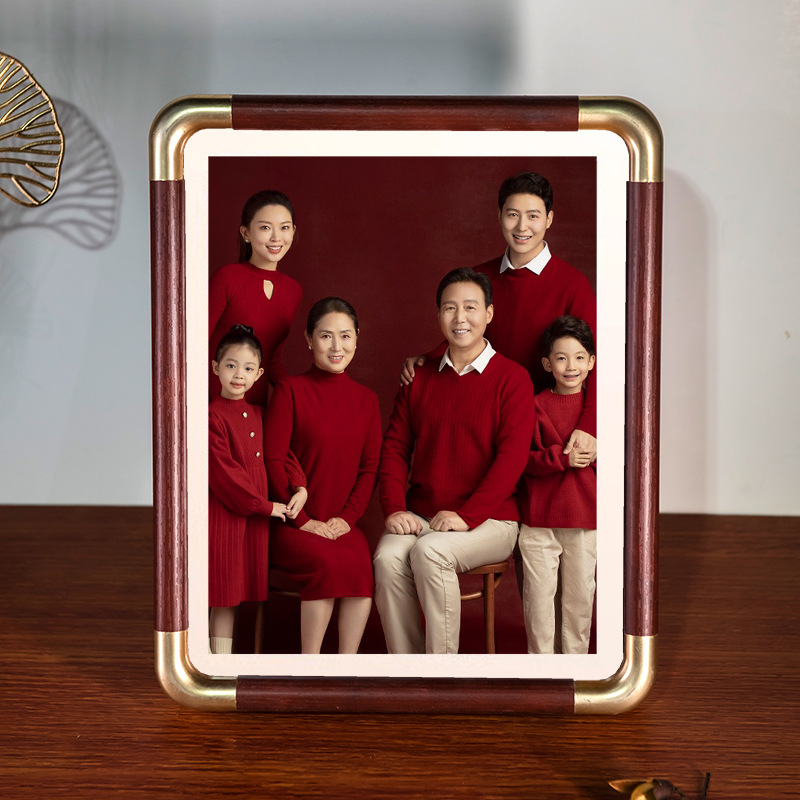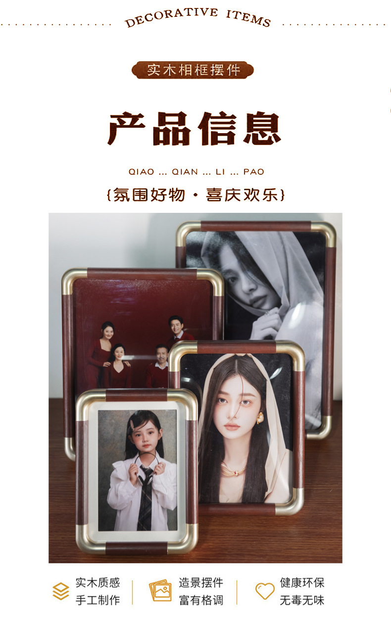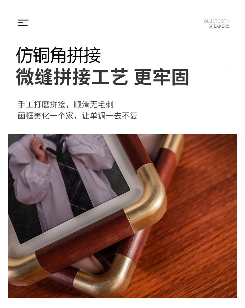 모조 구리 코너 둥근 그림 프레임 단단한 나무 질감 사진 프레임 테이블 도매 하이 엔드 데스크탑 장식 부티크 사진 프레임 제조 업체