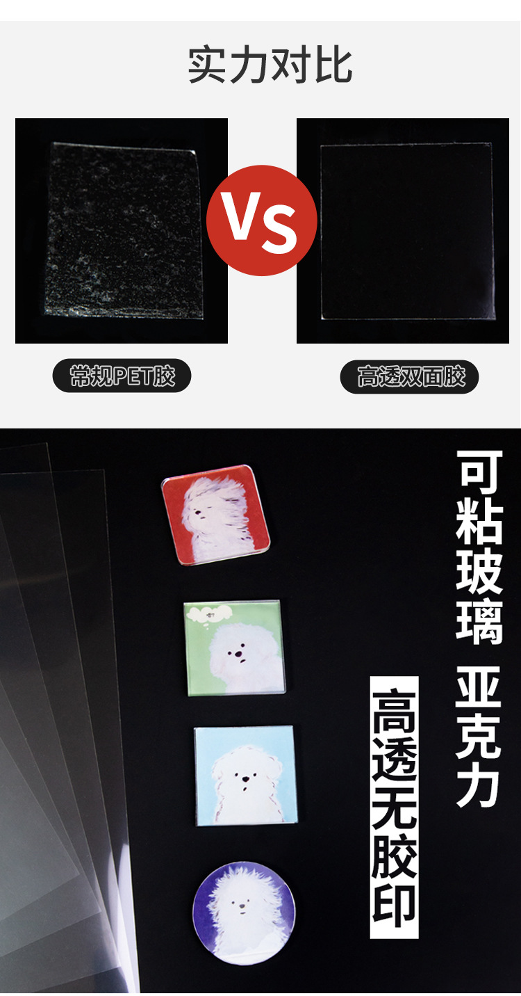 고점도 애완 동물 방수 및 끈적 끈적한 높은 투명 흐르는 대마는 거품과 높은 투과성 양면 접착제가없는 아크릴 냉장고 스티커로 만들 수 있습니다.