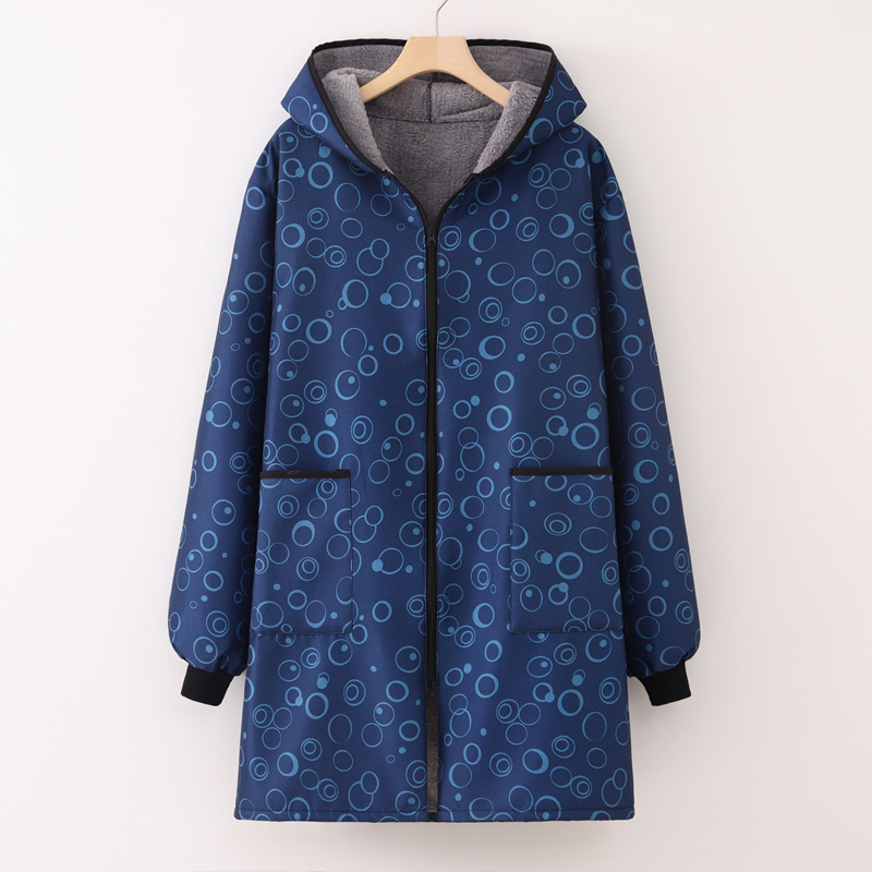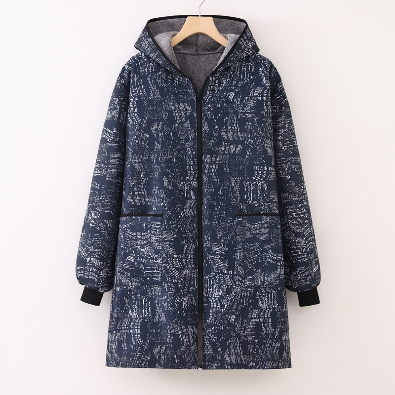 • 네이비 블루 플러스 벨벳 따뜻한 지퍼 반사