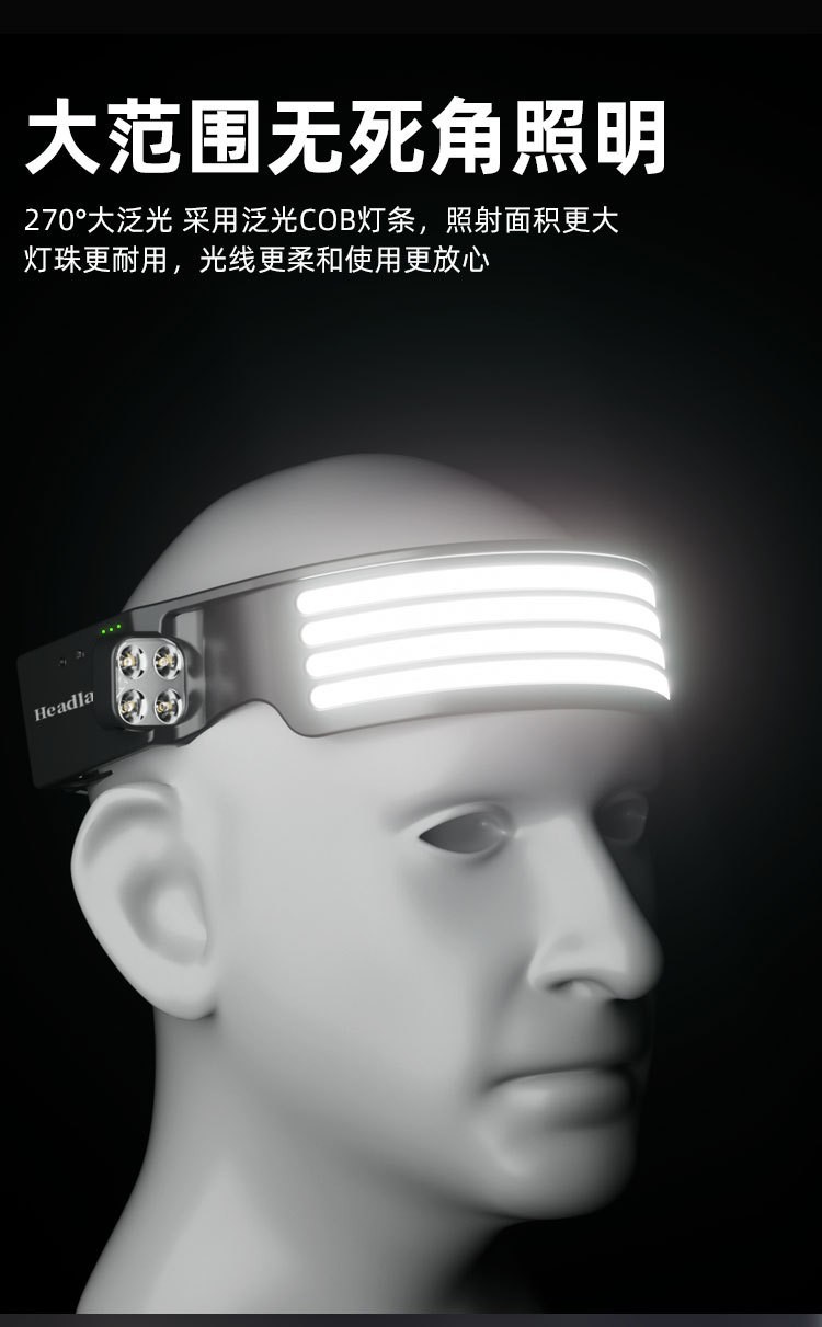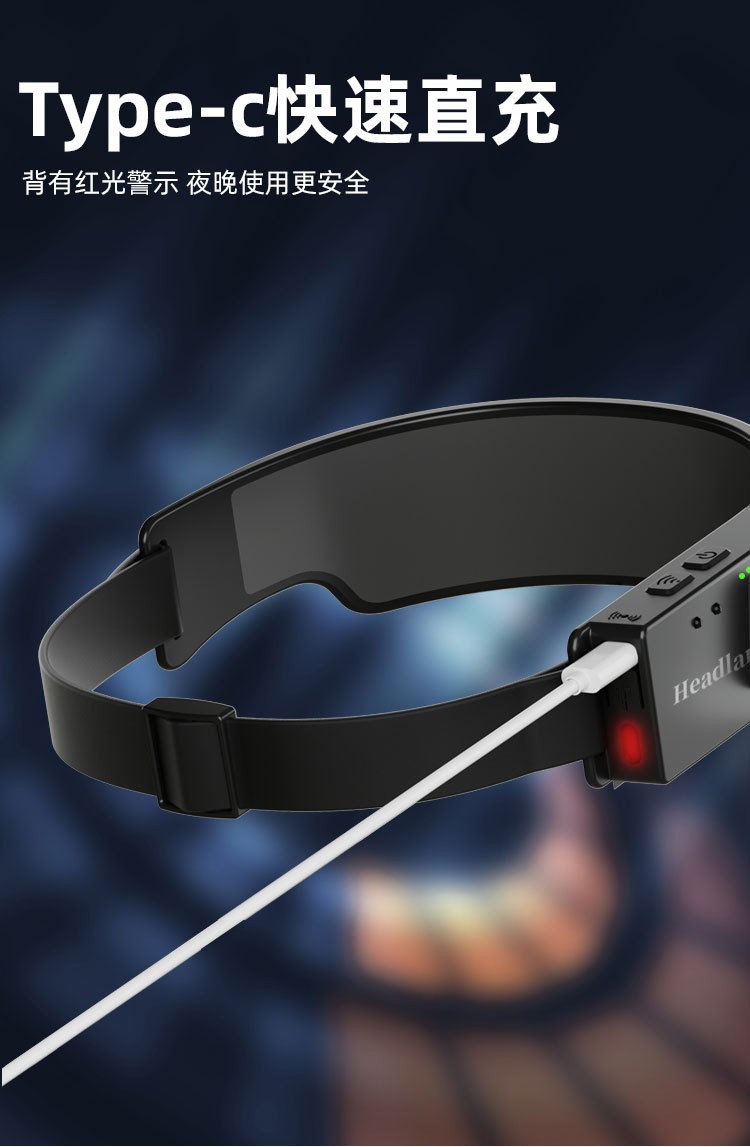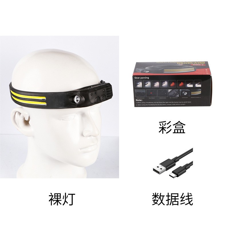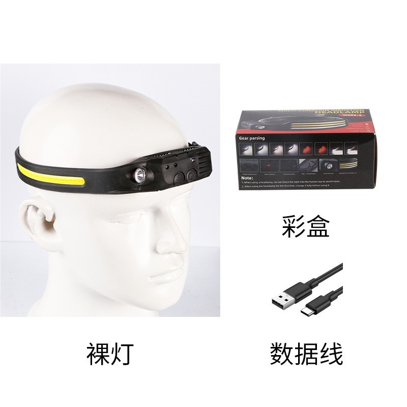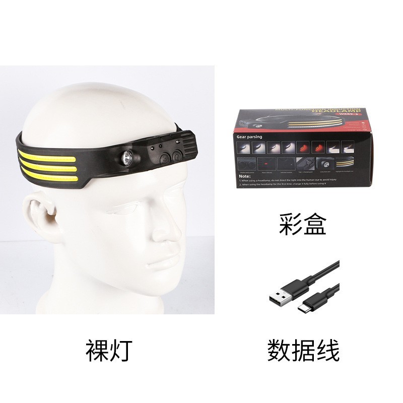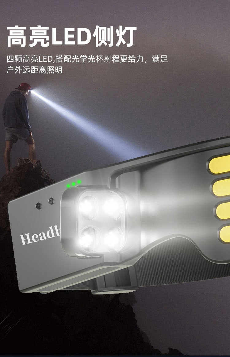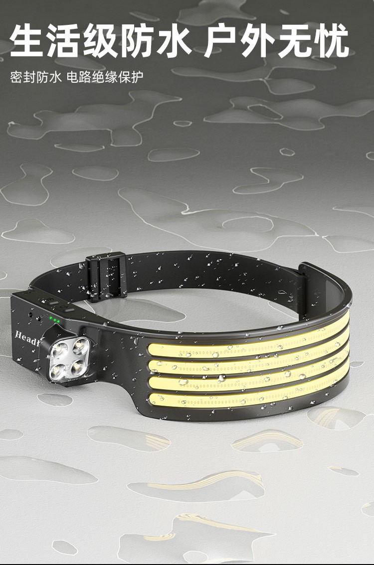 야외 강한 빛 COB 헤드 라이트 대형 투광 조명 측면 조명 야간 실행 실리콘 Type-C 충전 유도 방수