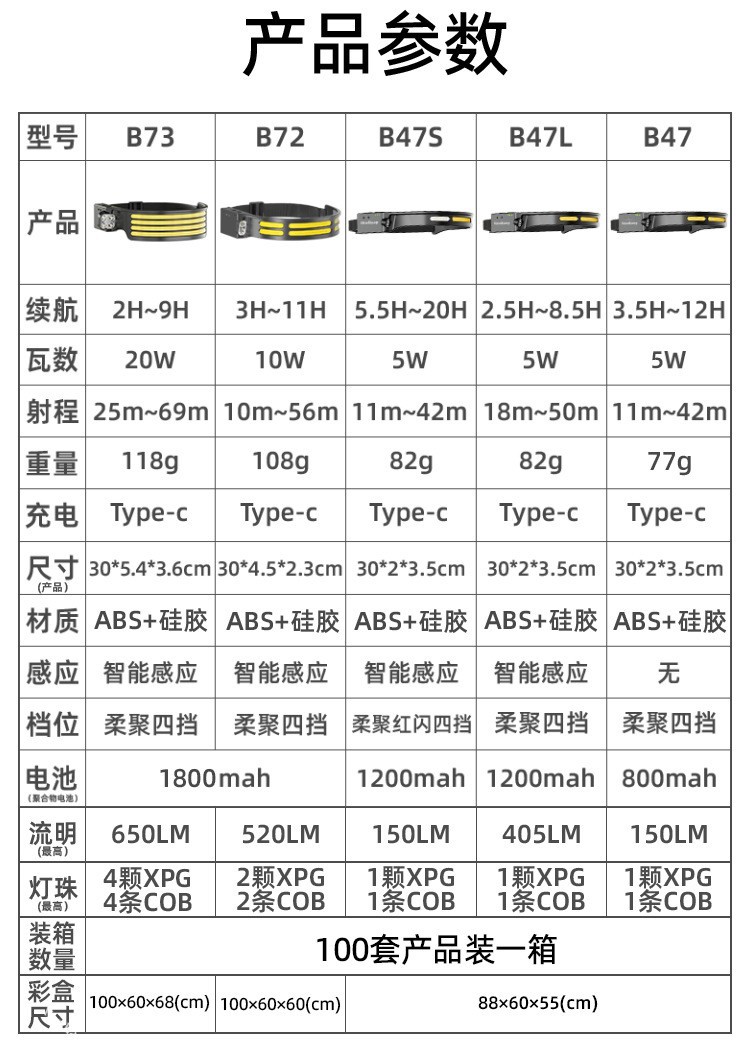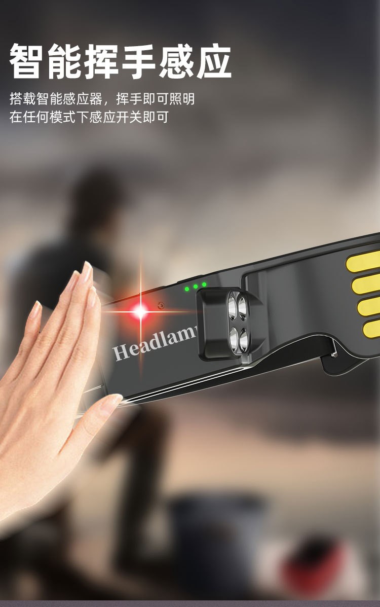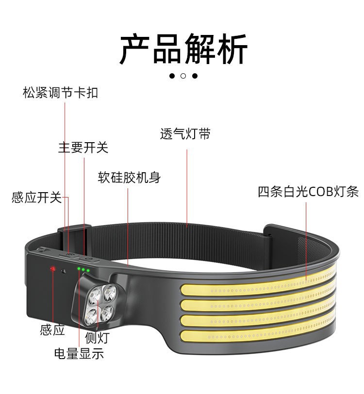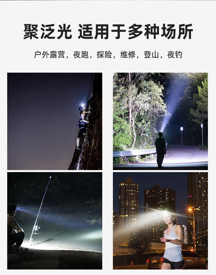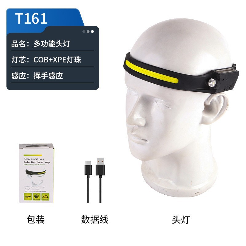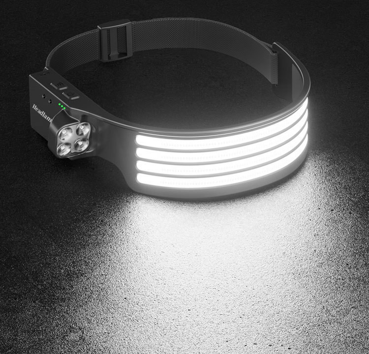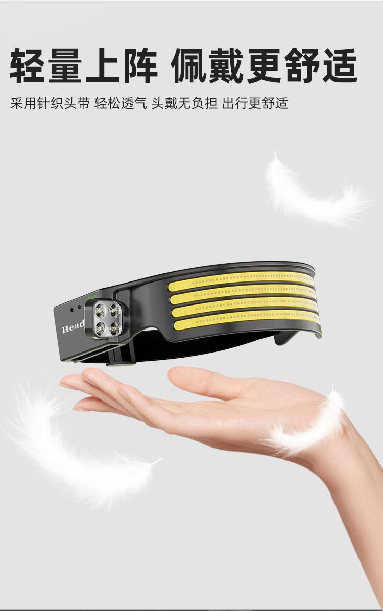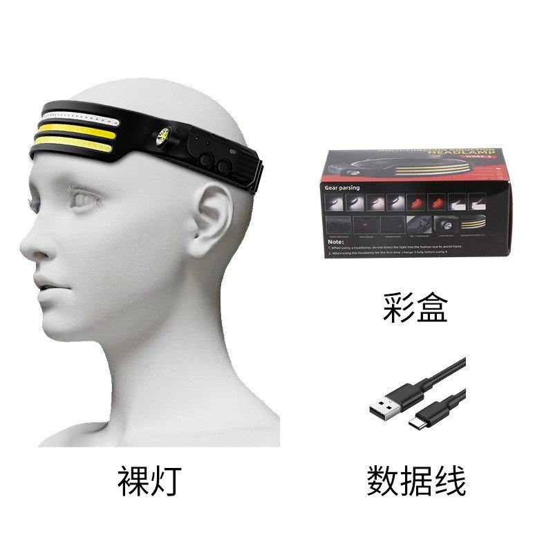 야외 강한 빛 COB 헤드 라이트 대형 투광 조명 측면 조명 야간 실행 실리콘 Type-C 충전 유도 방수