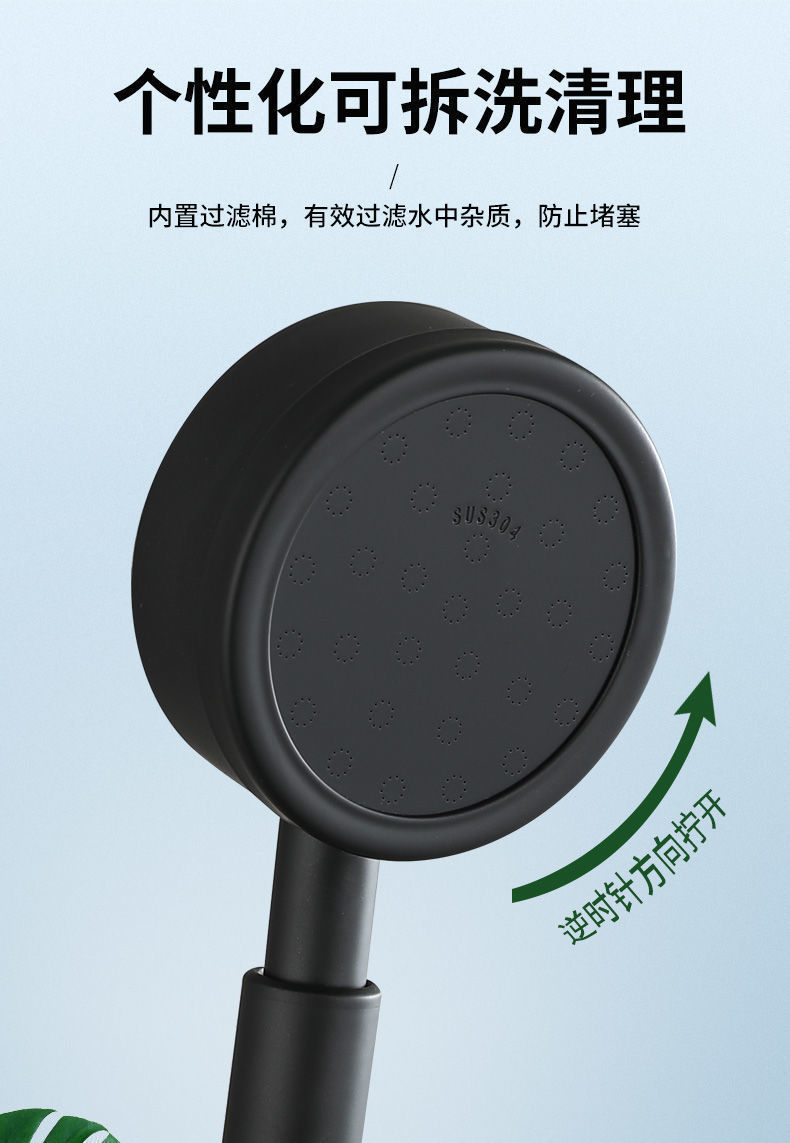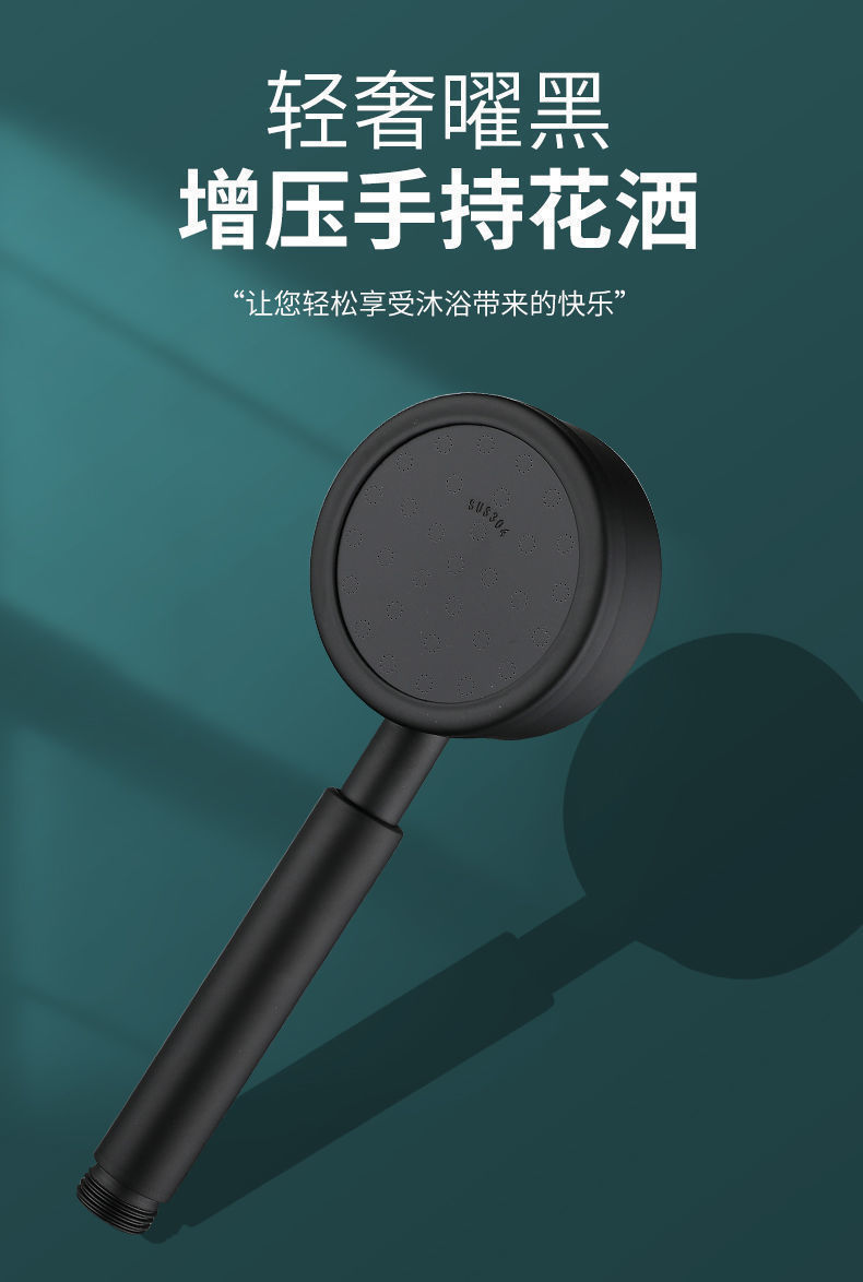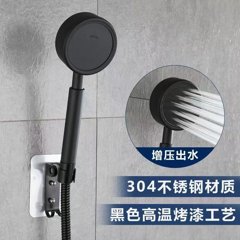 304 스테인레스 스틸 강한 가압 샤워 노즐 블랙 세트 욕실 단일 휴대용 욕조 샤워 헤드 공장 도매스토어 가기