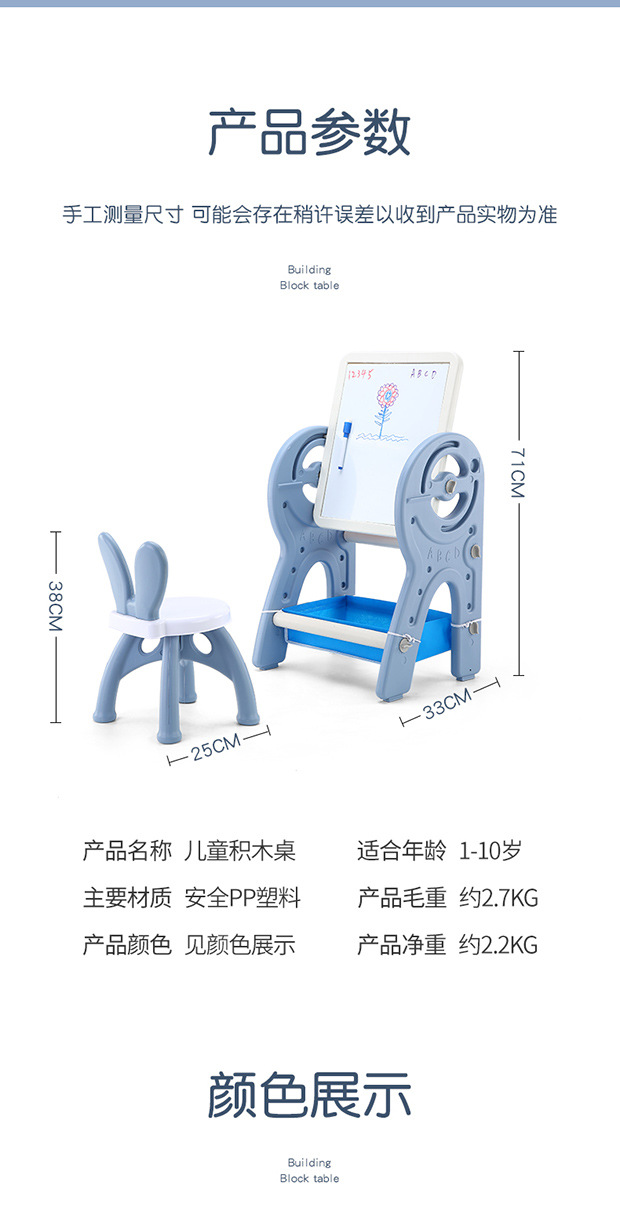• 파란색 2-in-1 빌딩 블록 드로잉 보드