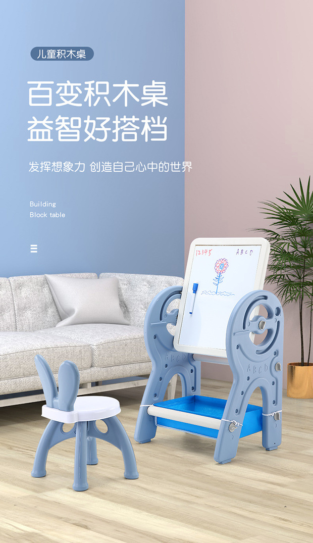 어린이 블록 테이블 겸용 그림판, 2-in-1 아기 조립 장난감 게임 테이블, 교육용 조합 낙서판스토어 가기