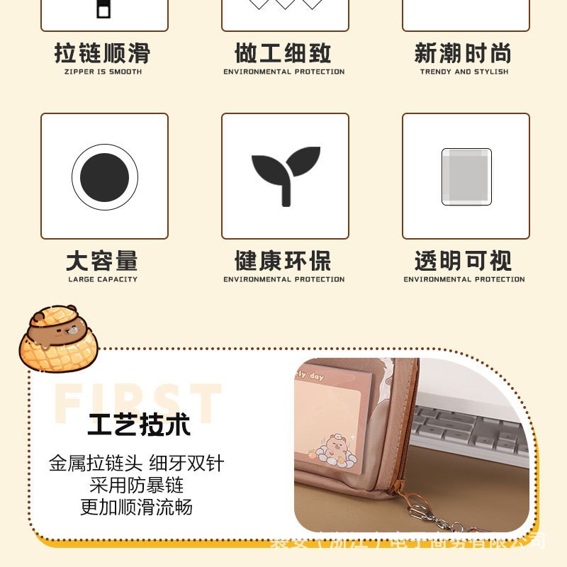 • 다층 스탠딩 필통 - 커피 + 카피바라 스티커 5개 + 카피바라 인형 + 열쇠고리 + 클립 2개