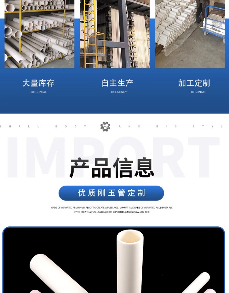 세라믹 튜브 높은 알루미늄 튜브 코런덤 튜브 9599 도자기 내마모성 절연 고온 열전대 보호 튜브 튜브 용광로 케이싱스토어 가기