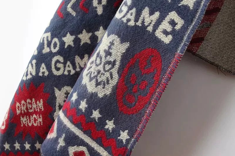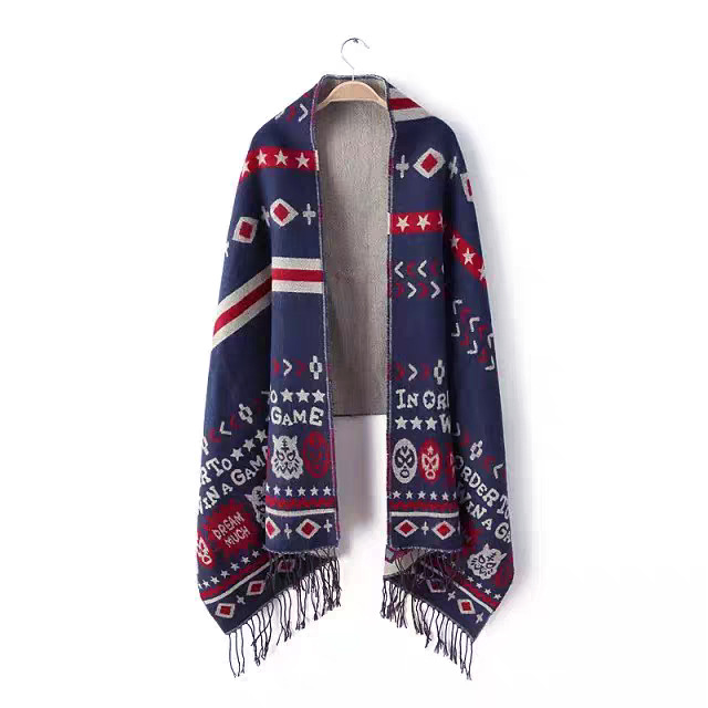 가을과 겨울 새로운 유럽과 미국 스타일 알파벳 페이스 북 양면 Jacquard Tassel All-match Shawl 스카프 여성의 초대형 소프트 넥