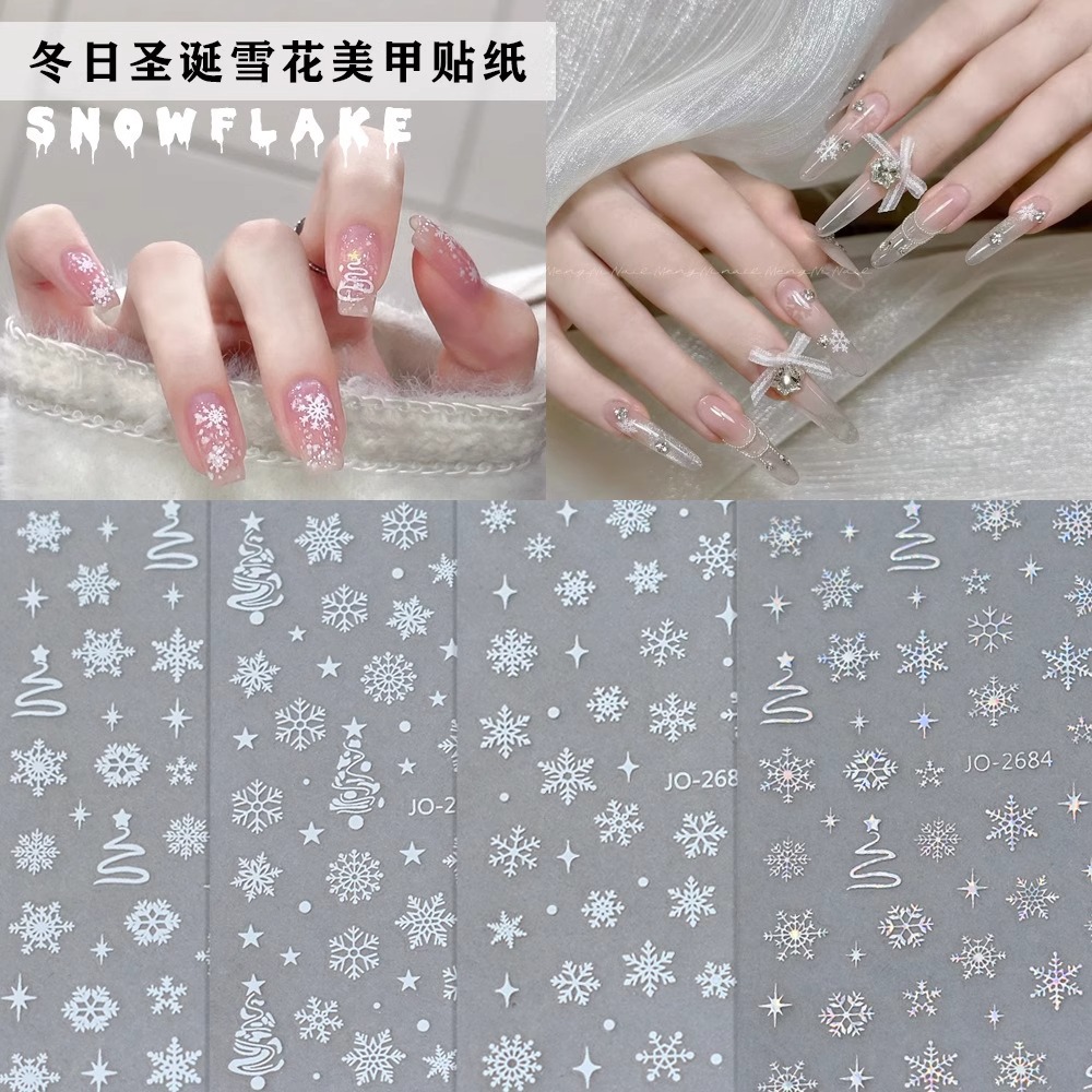 크리스마스 눈송이 네일 스티커, 속이 빈 흰색 레이저 실버 오각별 프렌치 스타일 점착식 그라데이션 네일 스티커스토어 가기