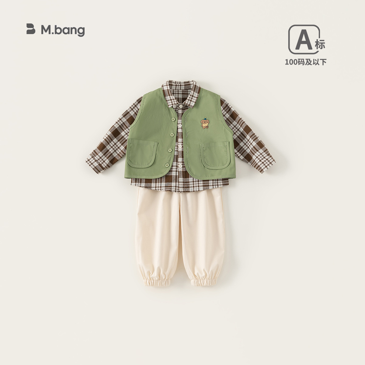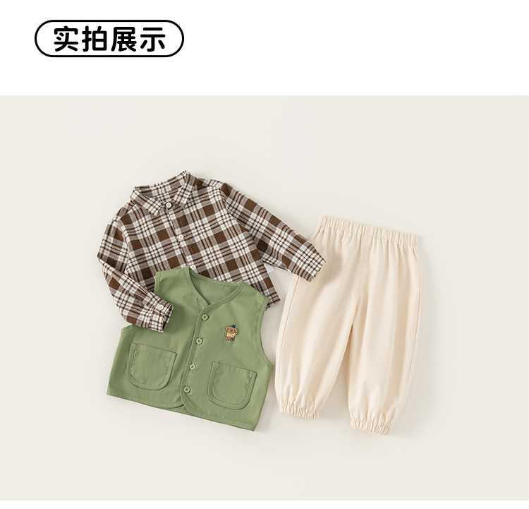방 선택 아동복 소년 곰 조끼 격자 무늬 셔츠 어린이 단색 발목 바지 3 조각 세트 아기 캐주얼 세트스토어 가기
