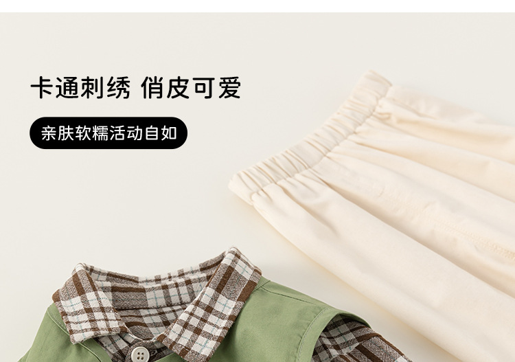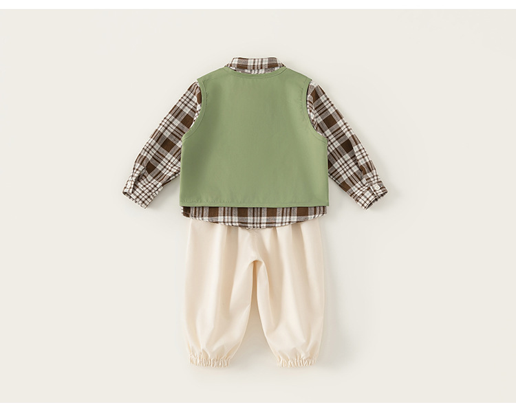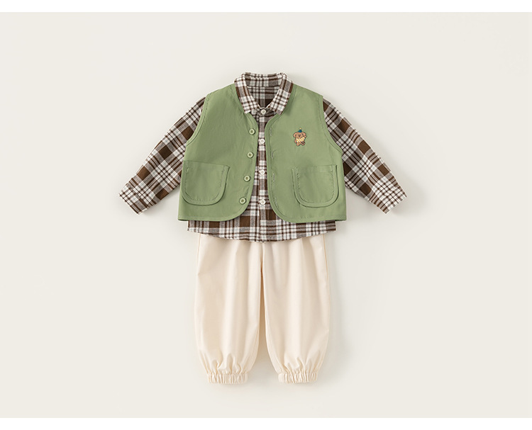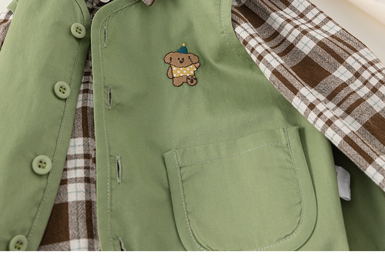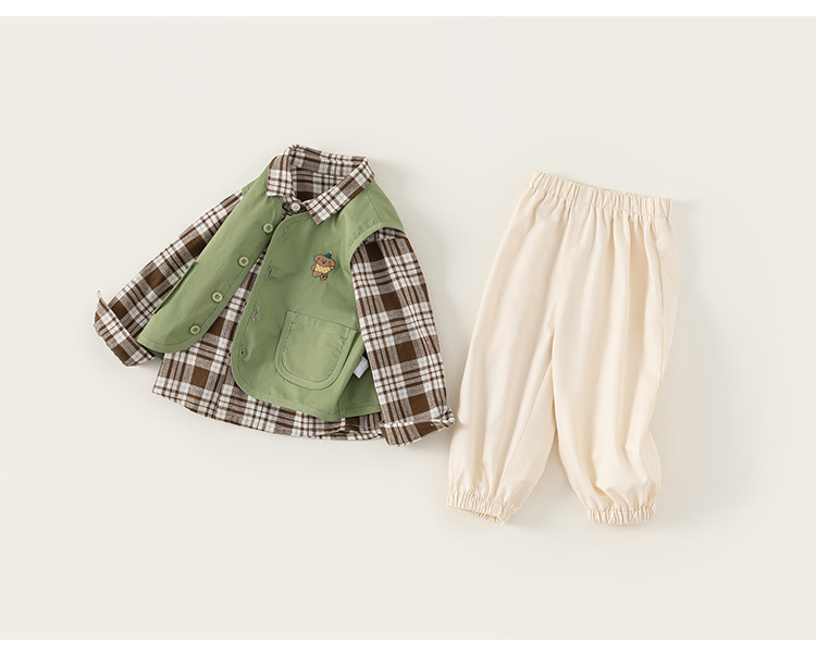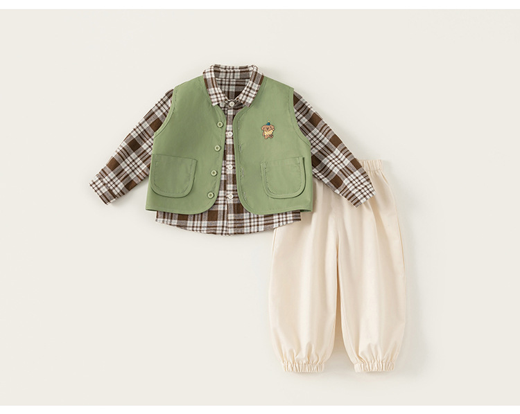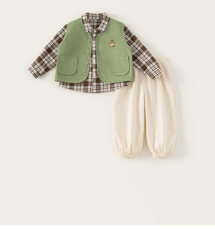 방 선택 아동복 소년 곰 조끼 격자 무늬 셔츠 어린이 단색 발목 바지 3 조각 세트 아기 캐주얼 세트