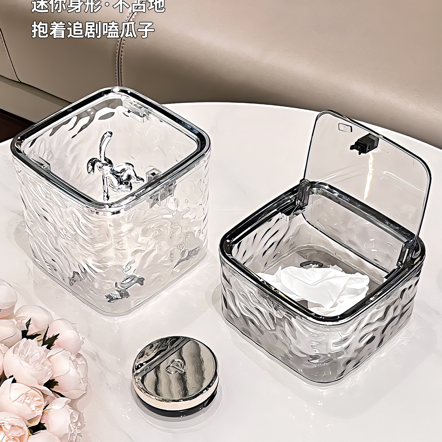 • ♥ ❤ ❥ ❣ 작은 물잔물결 데스크탑 쓰레기통/뚜껑 포함(투명 회색 은색) ❣ ❥ ❤