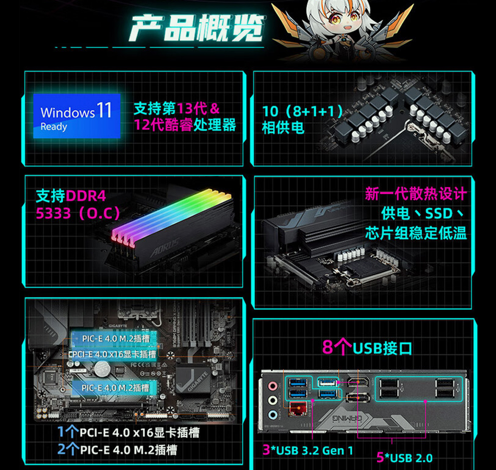 Gigabyte B760M GAMING X DDR4 컴퓨터 마더보드는 13세대 CPU i5 13400F 13600K에 적합합니다.