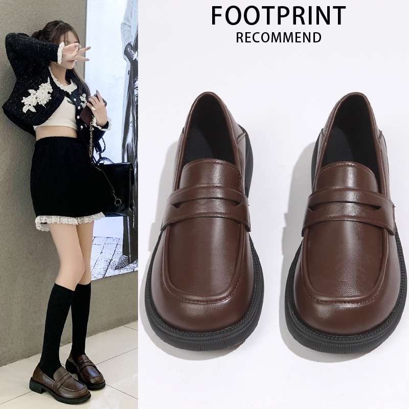 여성을위한 검은 색 작은 가죽 신발 영국 스타일 2025 봄, 가을 새로운 복고풍 플랫 신발 여성을위한 다목적 로퍼 신발스토어 가기