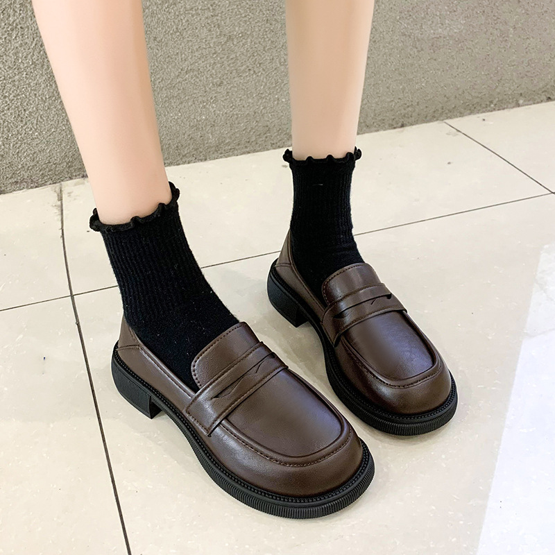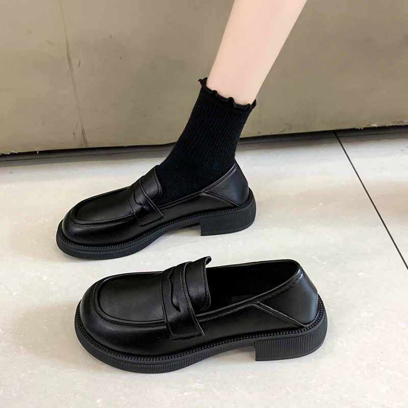 여성을위한 검은 색 작은 가죽 신발 영국 스타일 2025 봄, 가을 새로운 복고풍 플랫 신발 여성을위한 다목적 로퍼 신발
