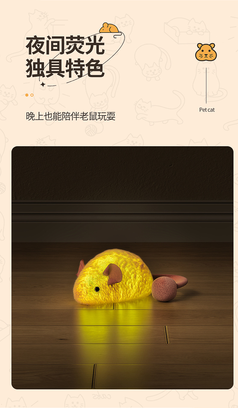 형광 마우스 시뮬레이션 음성 제작 고양이 장난감 테이 고양이 셀프 하이, 지루함을 덜어주기 위해 고양이는 신체적 힘, 물린 방지 및 내마모성 치아 마우스를 소비합니다.스토어 가기