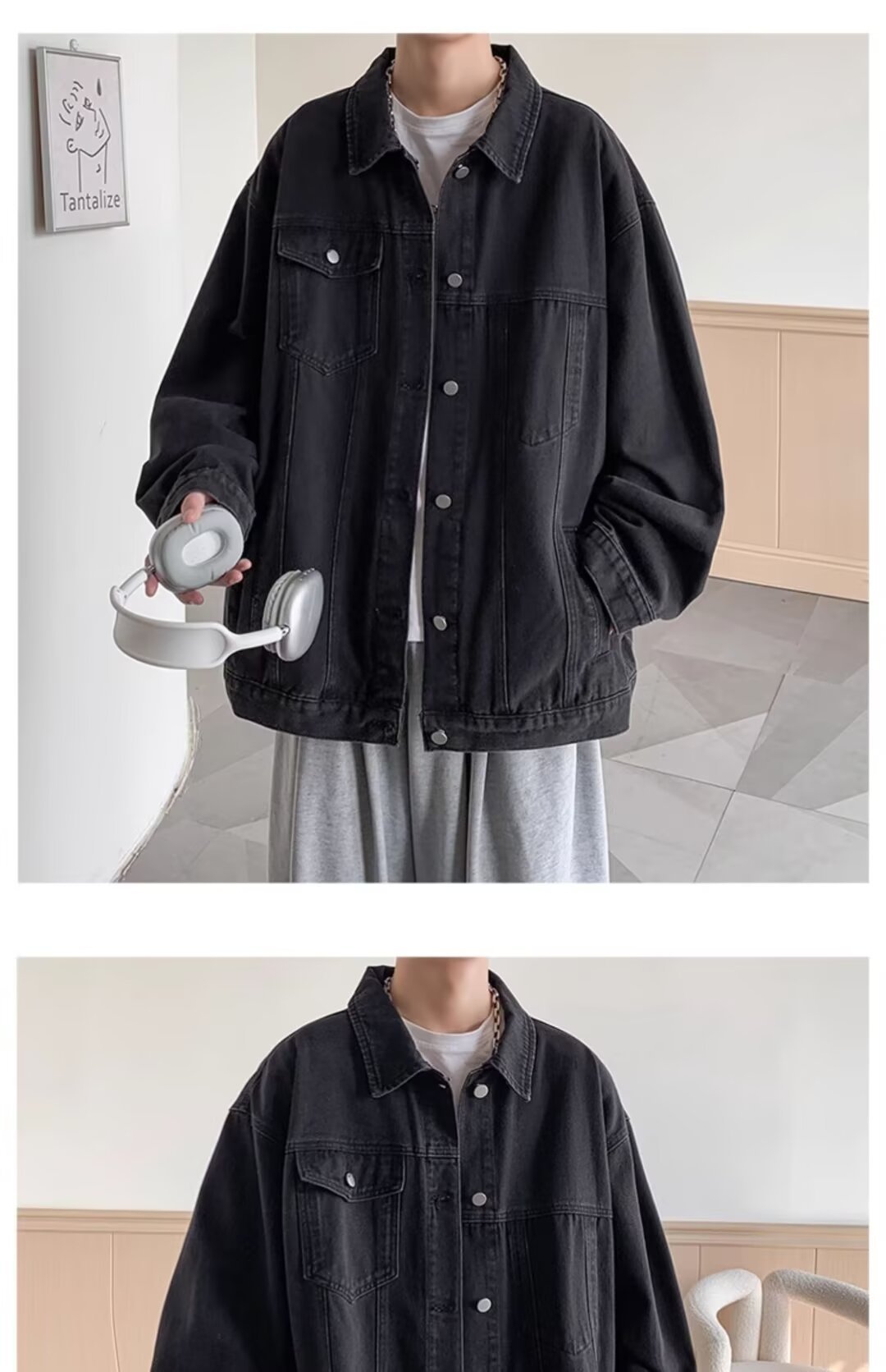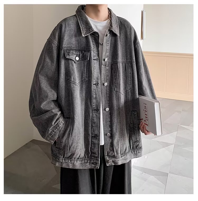 도매 데님 코트 남성 봄과 가을 복고풍 러피 잘 생긴 frock 캐주얼 재킷 트렌디 브랜드 청소년 조커 옷깃 탑스토어 가기