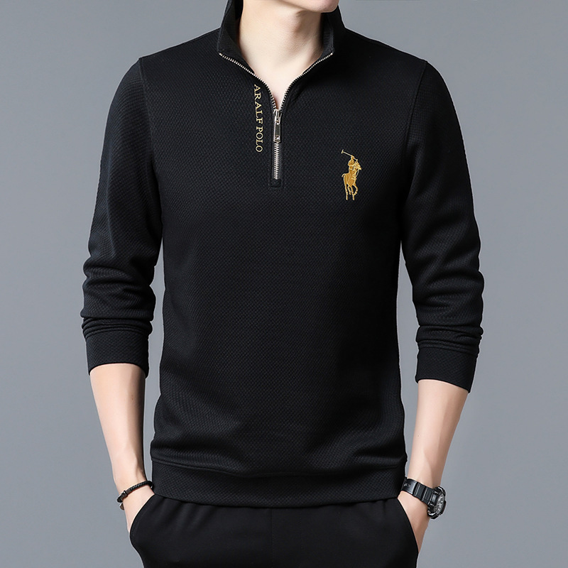 공장 매장 패션 스웨터 남자 2024 새로운 캐주얼 칼라 하프 풀 가을 긴 소매 티셔츠베이스 셔츠