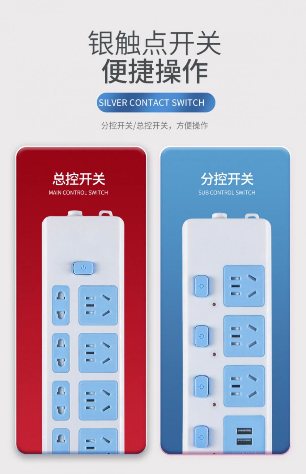 • 파란색과 흰색 독립 스위치 4개 소켓
