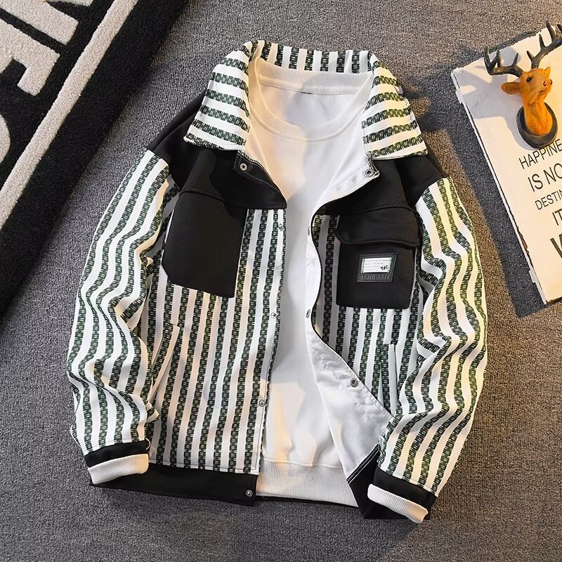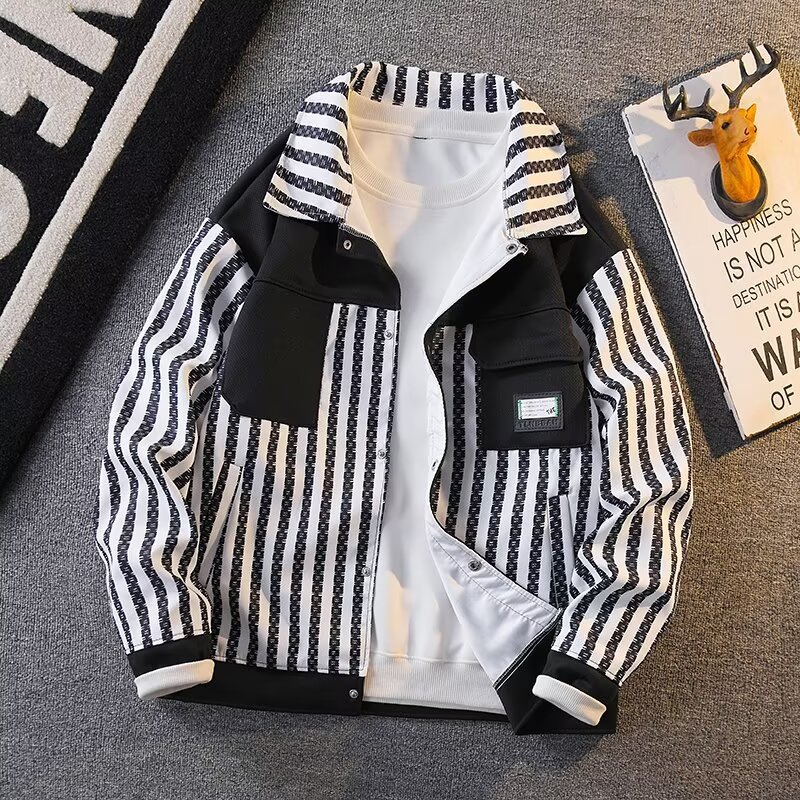 크록 재킷 남자 가을과 겨울 2024 새로운 남자 재킷 캐주얼 셔츠 스티칭 줄무늬 셔츠스토어 가기