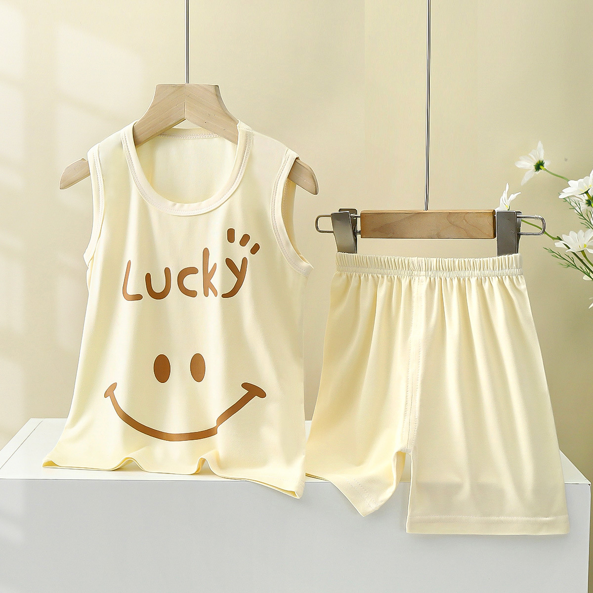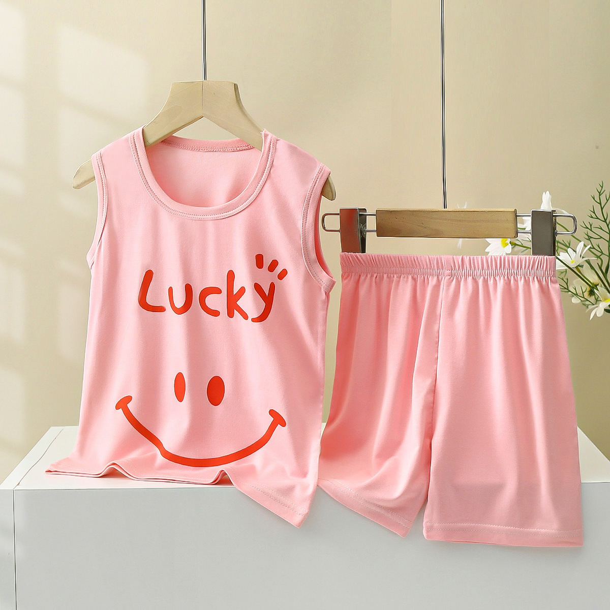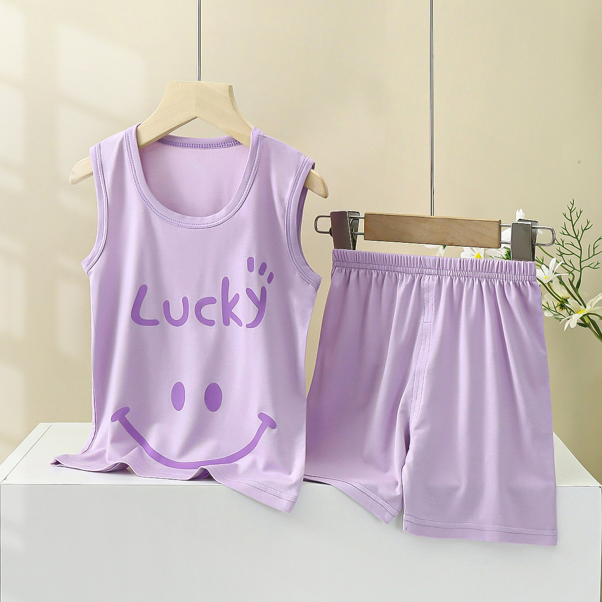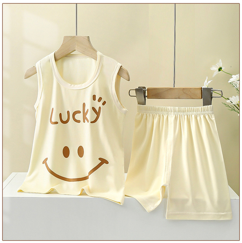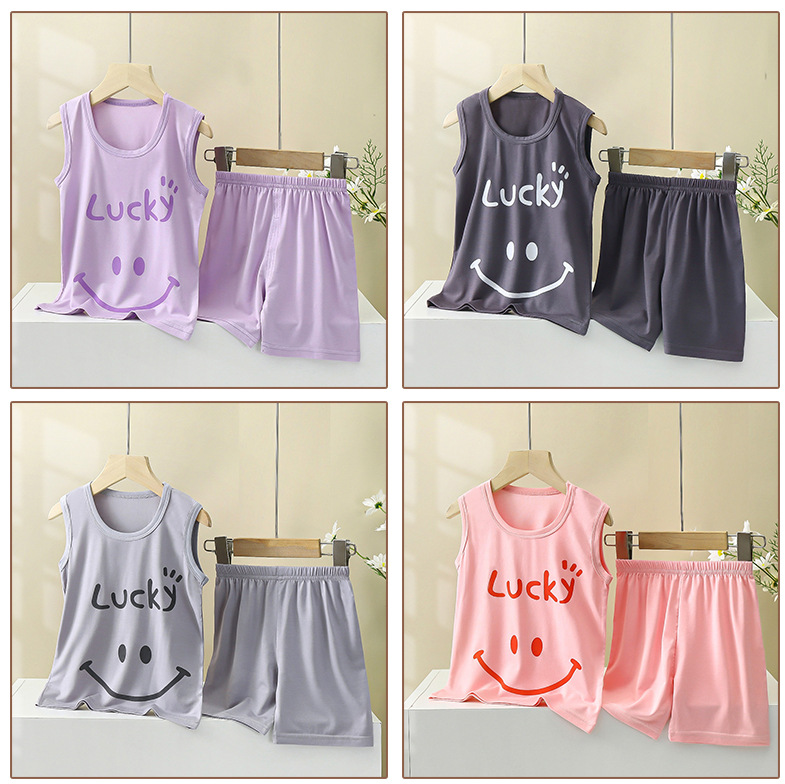 맞춤형 어린이 모달 조끼 정장 여름 소년 민소매 가정 의류 소녀 서스펜더 잠옷 아기 아동 의류