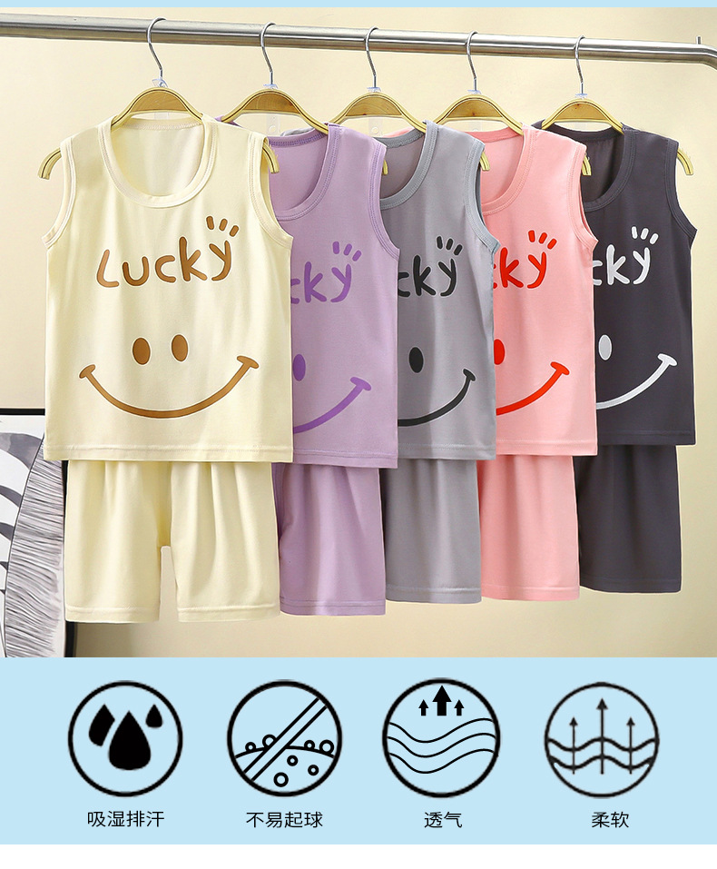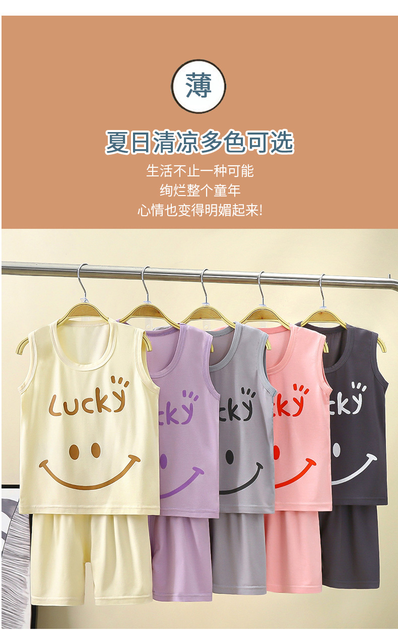 맞춤형 어린이 모달 조끼 정장 여름 소년 민소매 가정 의류 소녀 서스펜더 잠옷 아기 아동 의류스토어 가기
