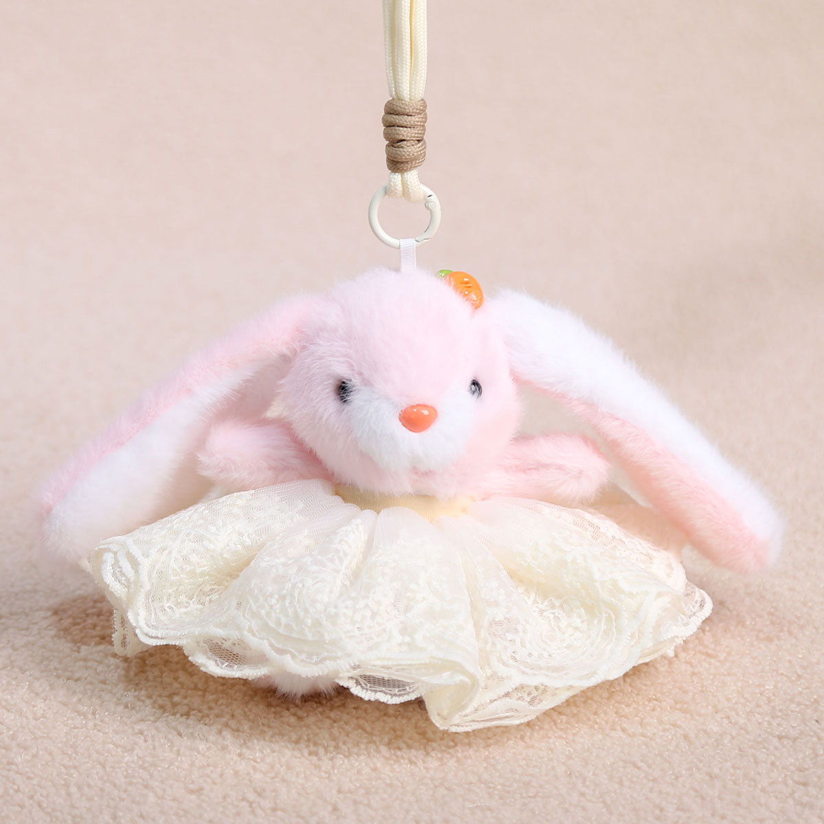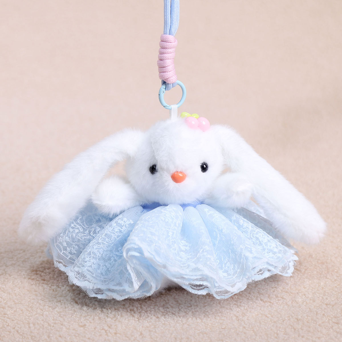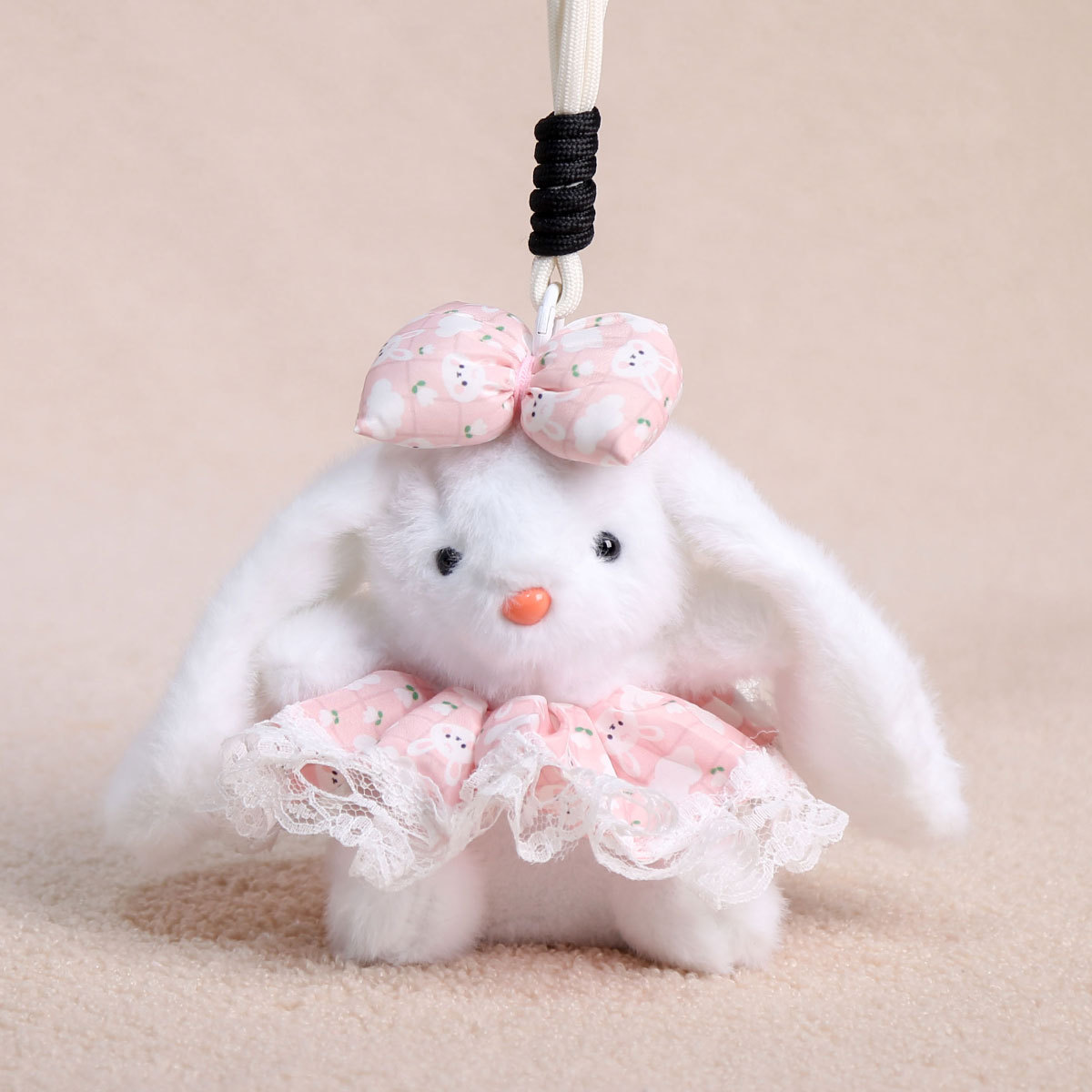 • 짧은 벨벳 거즈 스커트 귀가 늘어진 토끼 펜던트 - 약 18cm/57g