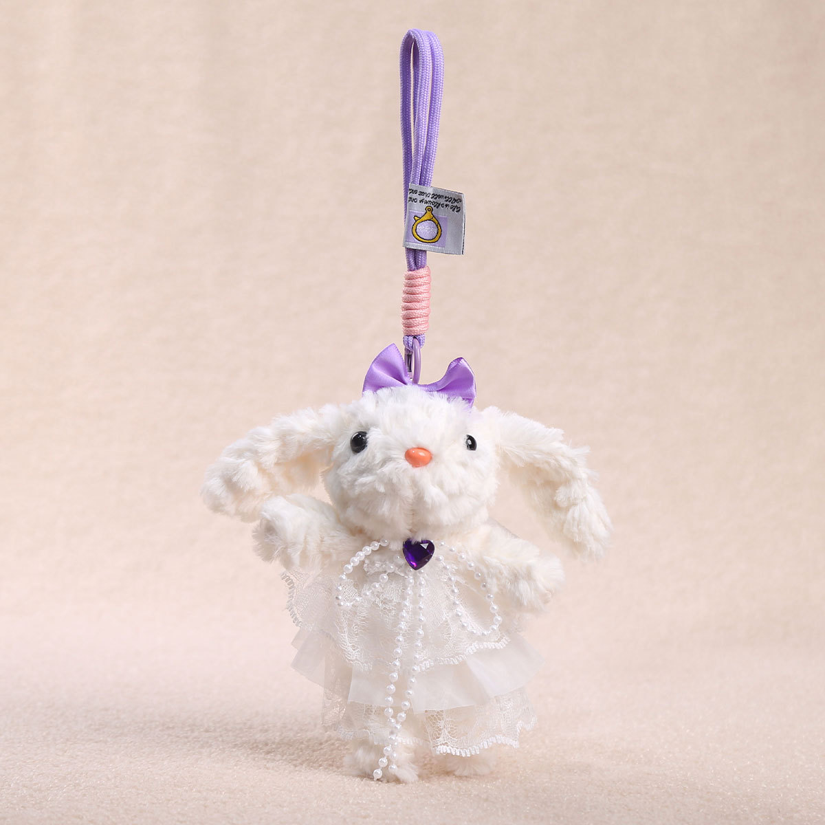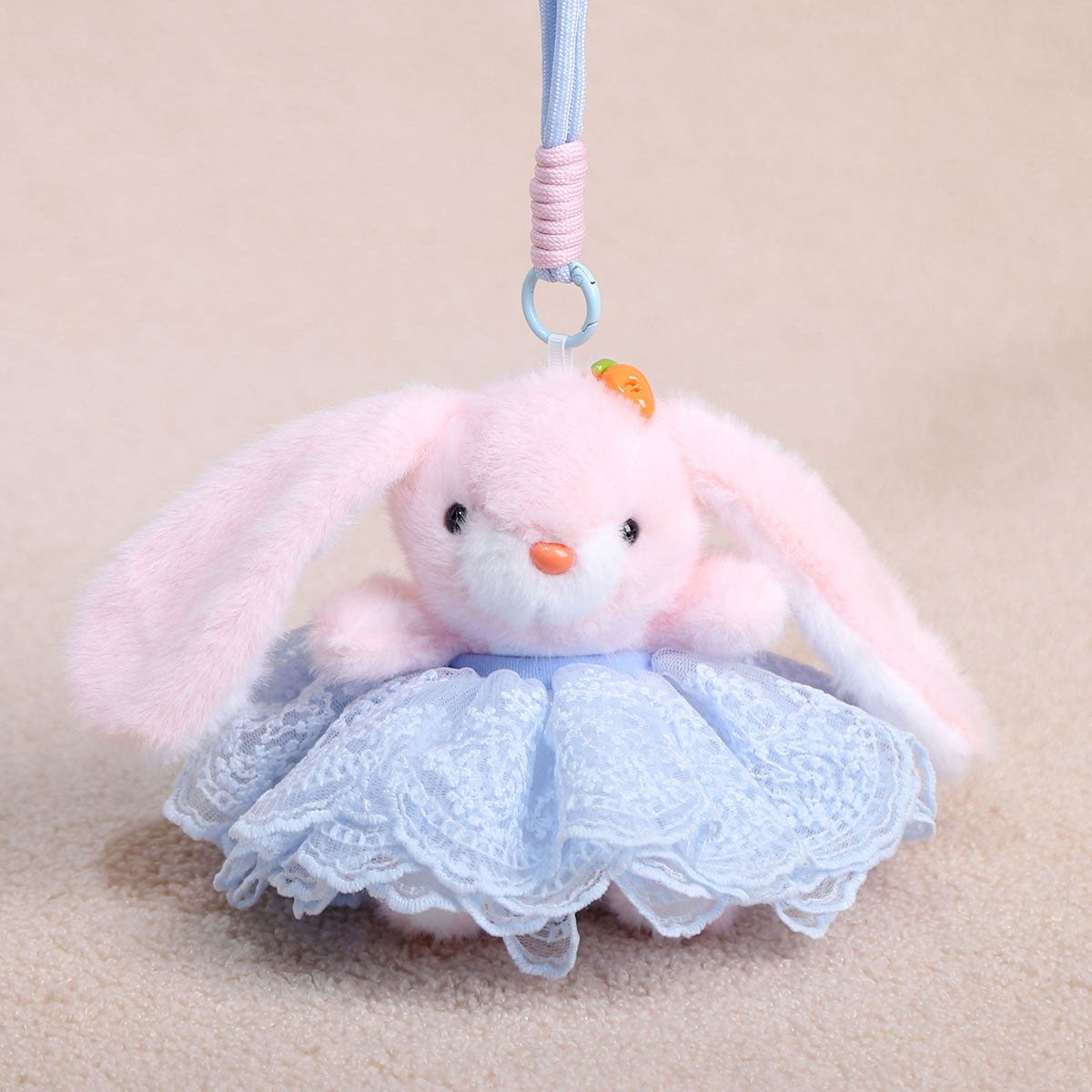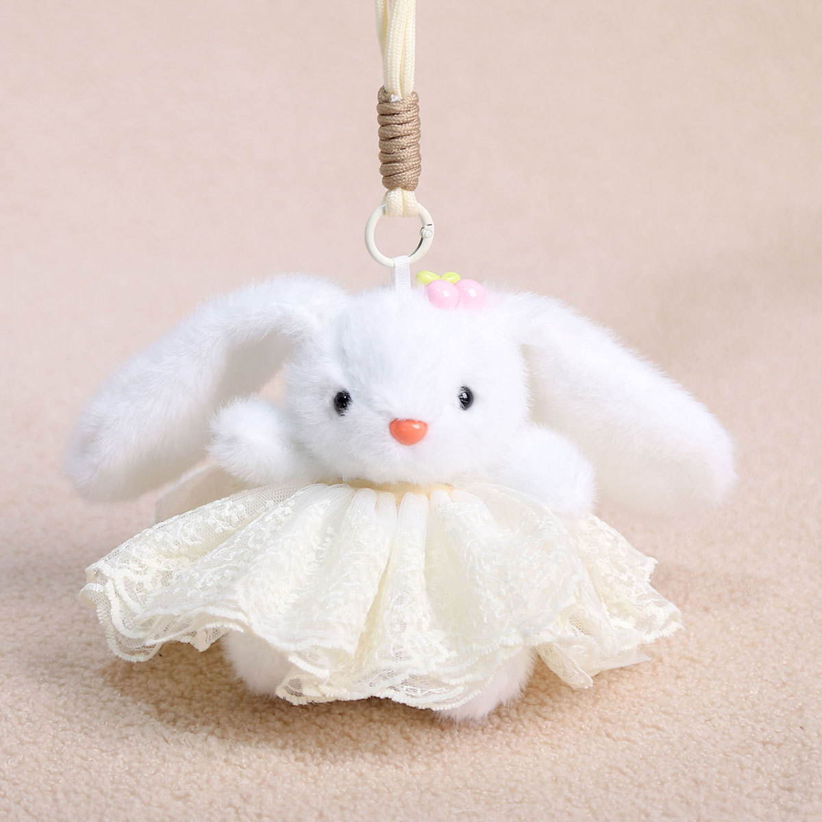 • 짧은 벨벳 거즈 스커트 귀가 늘어진 토끼 펜던트 - 약 18cm/57g