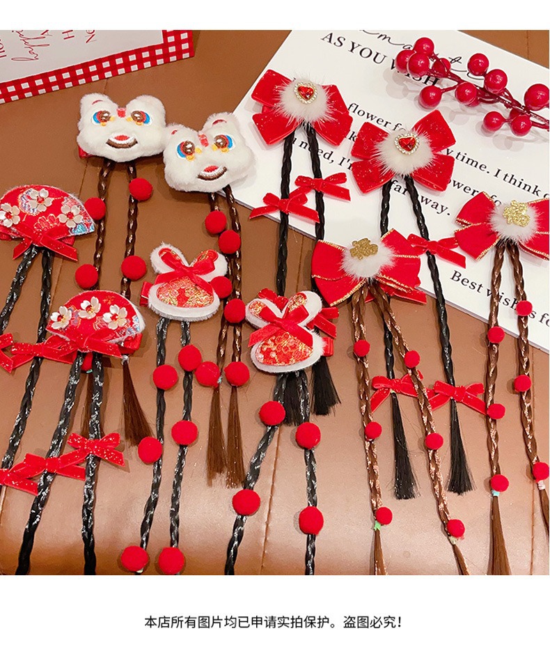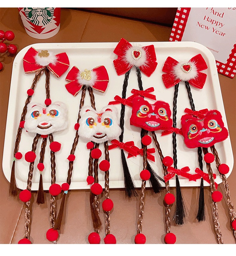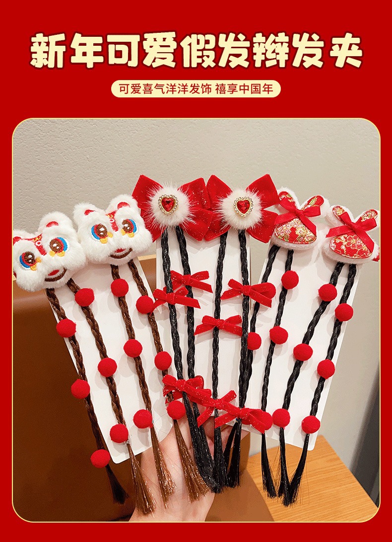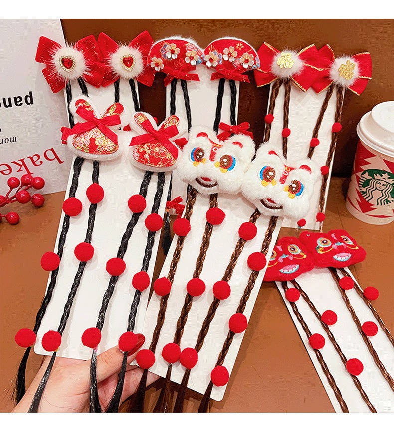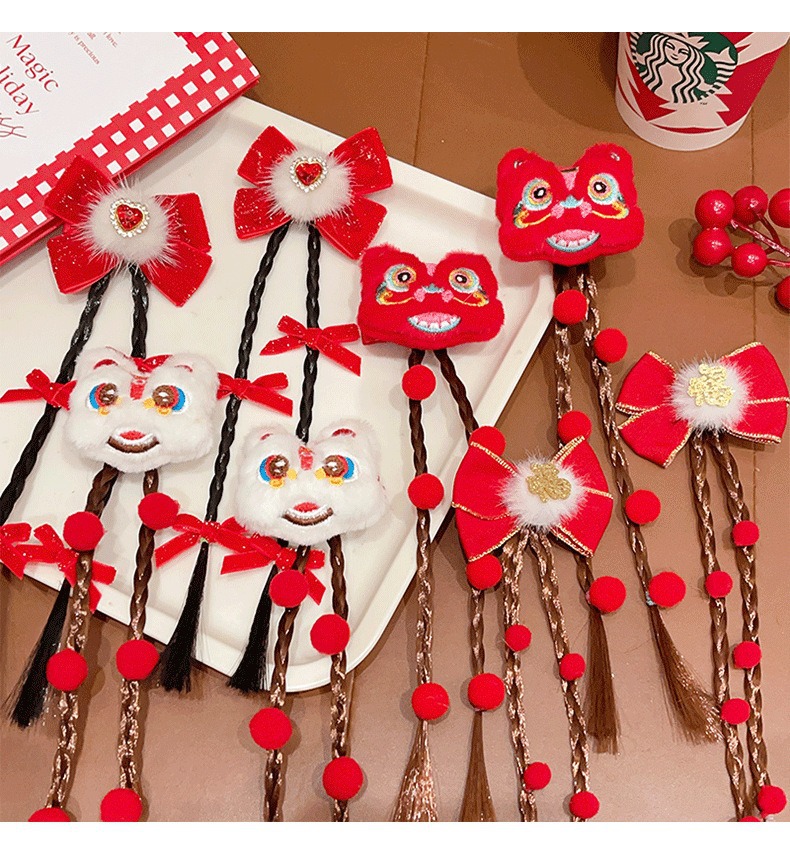 새해 어린이 머리핀 새해 큰 빨간 새해 복 많이 받으세요 헤어 액세서리 헤어 볼 가발 머리 귀여운 머리핀