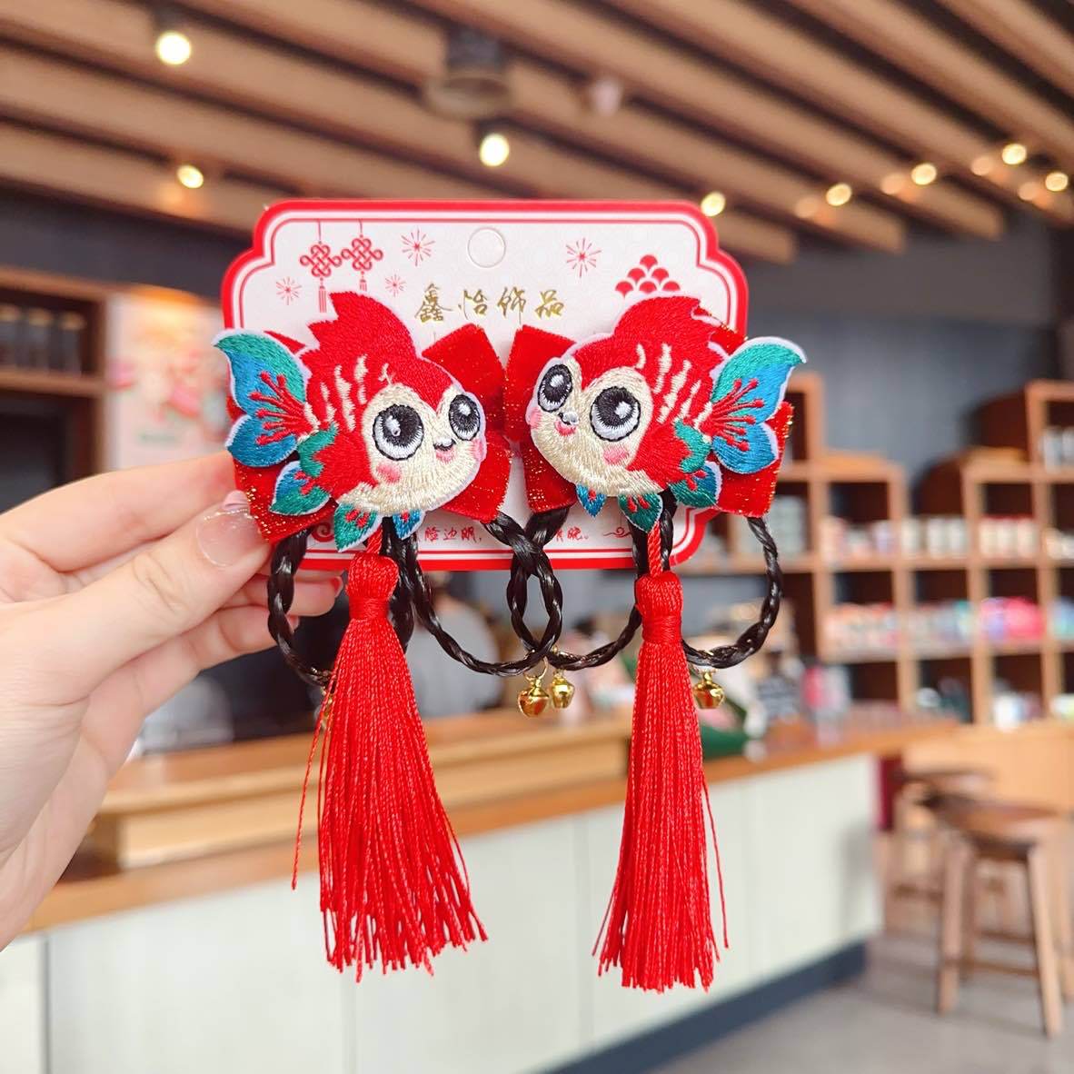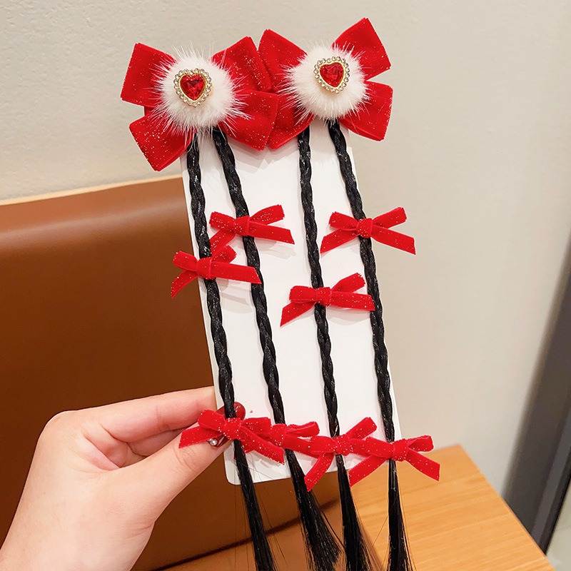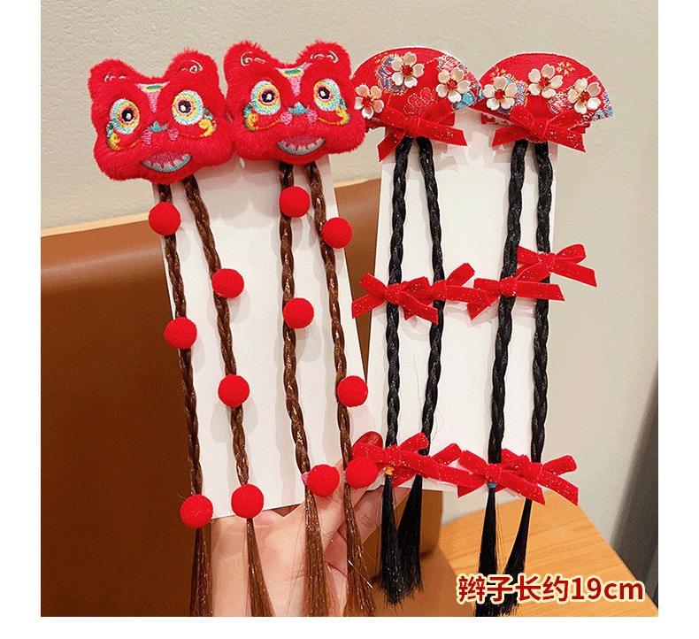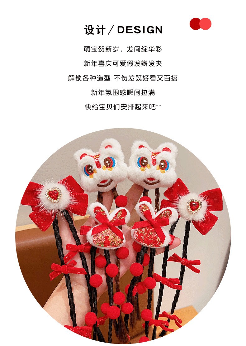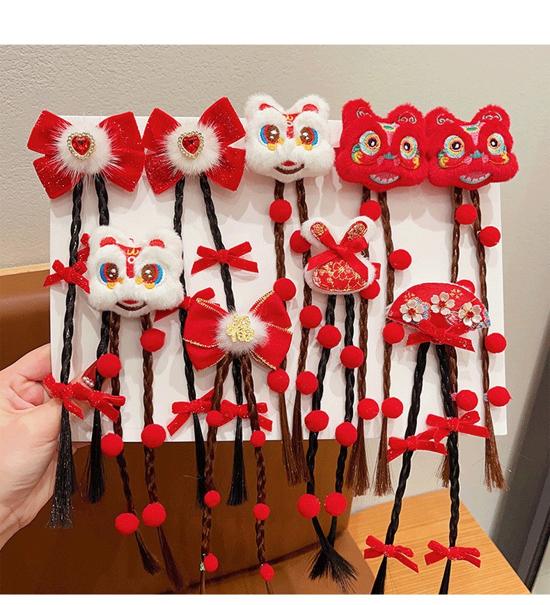새해 어린이 머리핀 새해 큰 빨간 새해 복 많이 받으세요 헤어 액세서리 헤어 볼 가발 머리 귀여운 머리핀