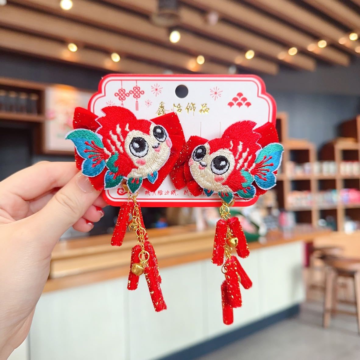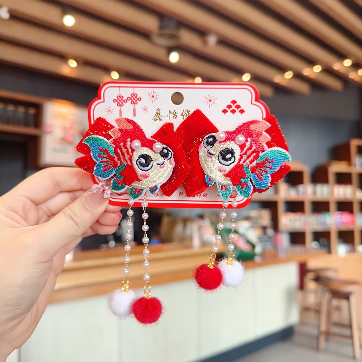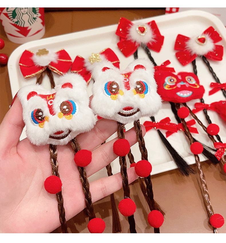 새해 어린이 머리핀 새해 큰 빨간 새해 복 많이 받으세요 헤어 액세서리 헤어 볼 가발 머리 귀여운 머리핀스토어 가기
