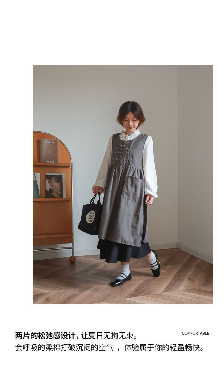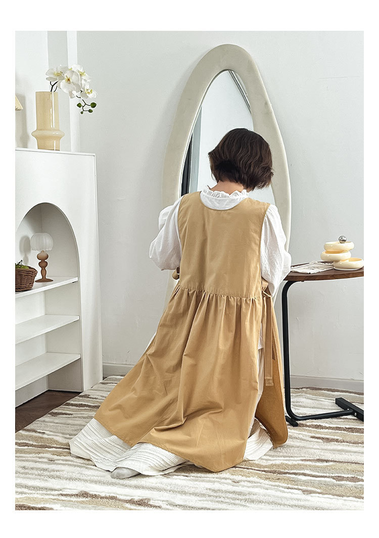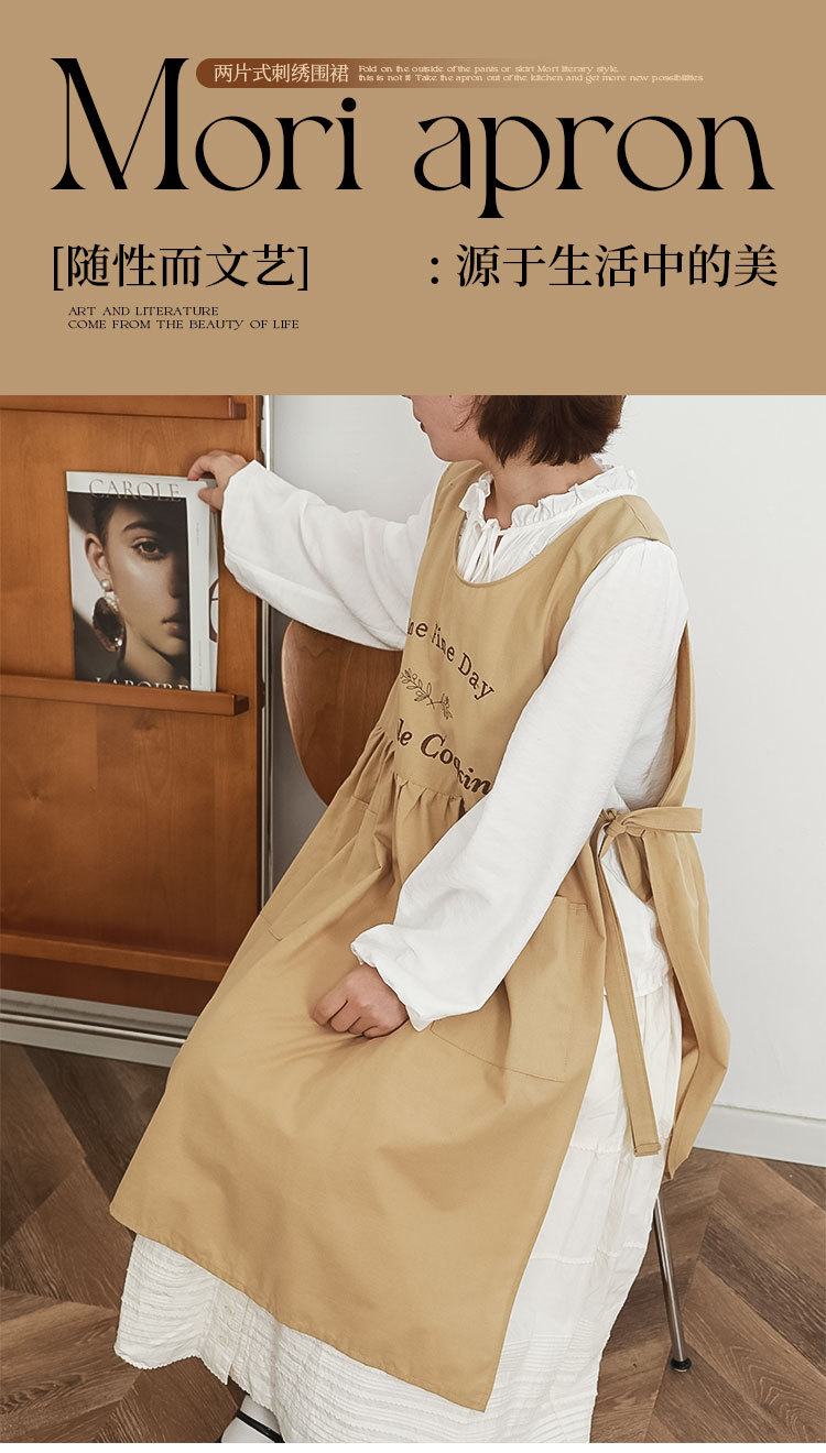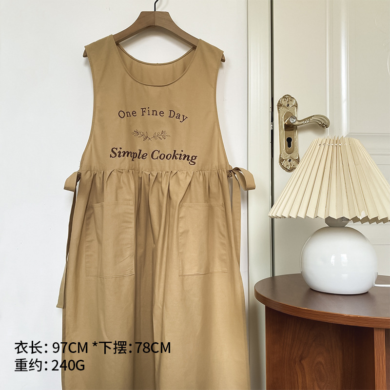 2024 새로운 어깨 끈 간단한 작업복 여성 민소매 긴면 방오 주방 홈 앞치마 도매