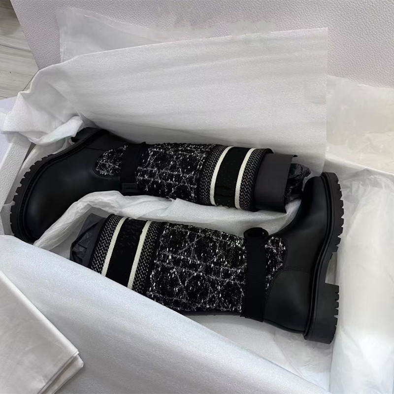 하이 에디션 D 홈 레터 자수 양말 부츠 정품 가죽 컬러 접합 무릎 긴 부츠 두꺼운 하단 기사 부츠 여성을위한 얇은 부츠스토어 가기