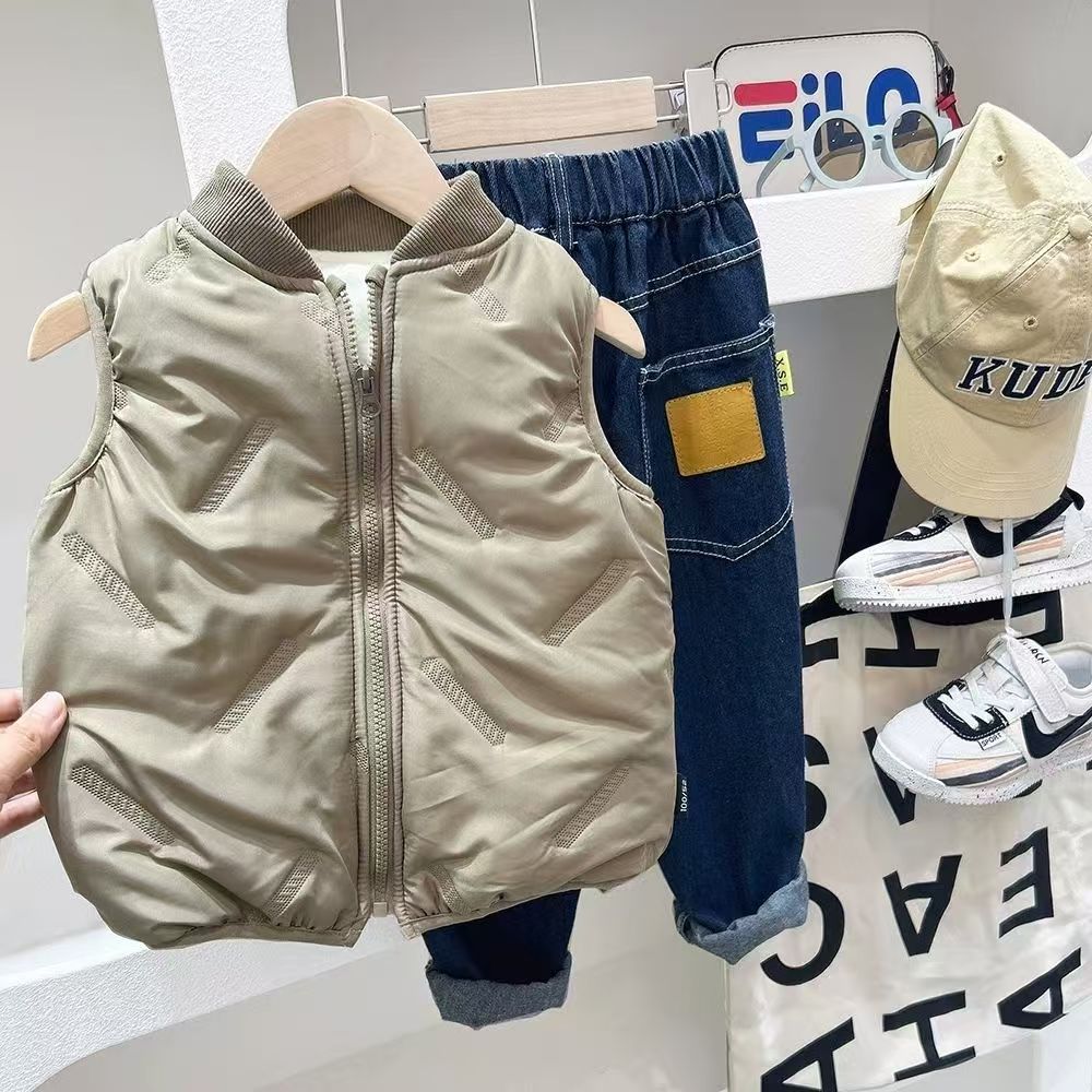 어린이 조끼 외부 착용 2024 새로운 가을과 겨울 슈퍼 소프트 웨이스트 코트 따뜻한 소년의 두꺼운 아기 내부 탱크 조끼스토어 가기