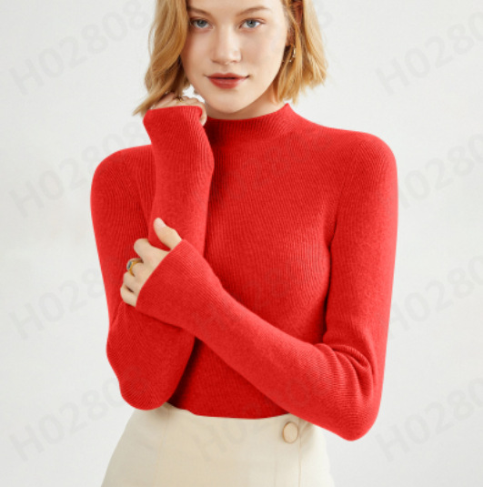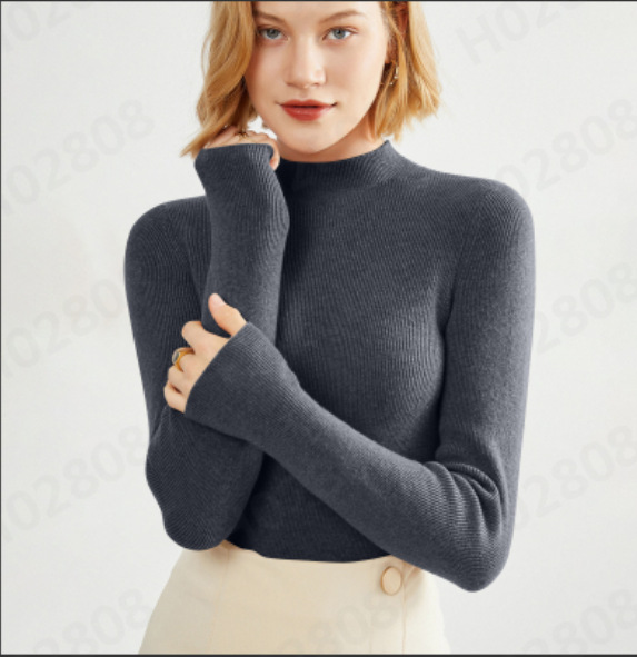 하프 터틀넥 스웨터 여성용 가을과 겨울 최신 헐렁한 플러스 사이즈 반 높이 슬리밍 미드 칼라 서양식 이너 스웨터베이스 셔츠스토어 가기