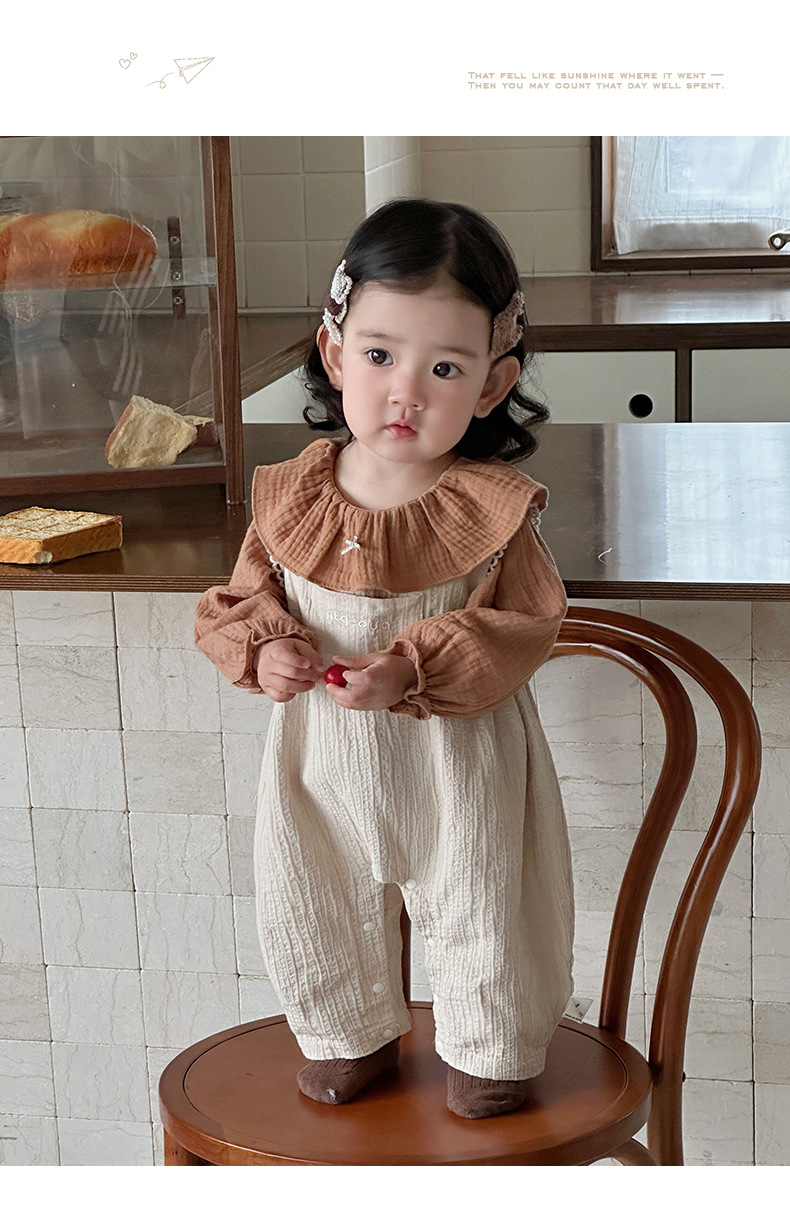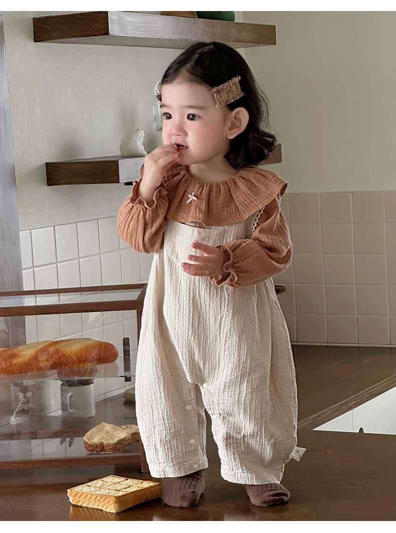 세련된 한국 스타일 여아 정장, 가을 신상 아기 멜빵바지 세트, 투피스 외출복스토어 가기