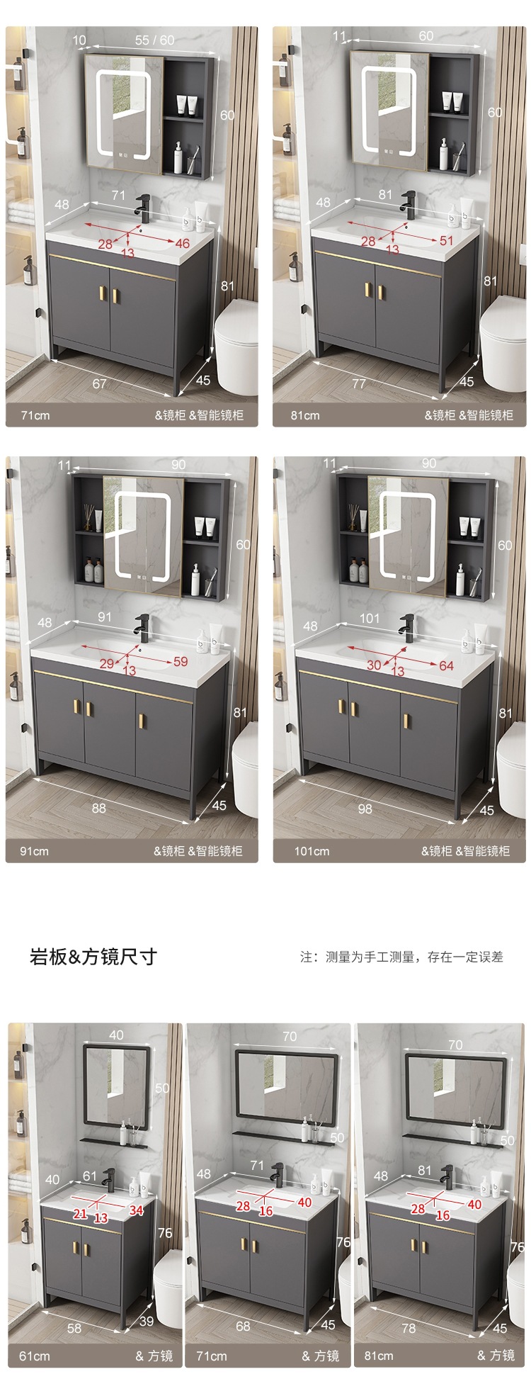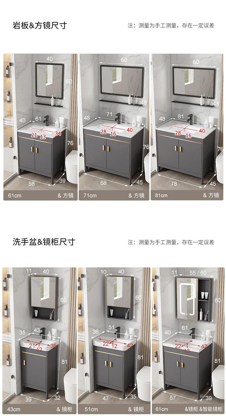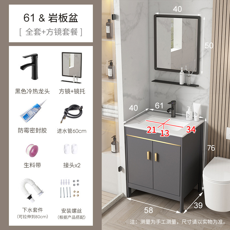 • 슬레이트 세면대 60 그레이 골드 완전 밀폐형 플로어 + 거울