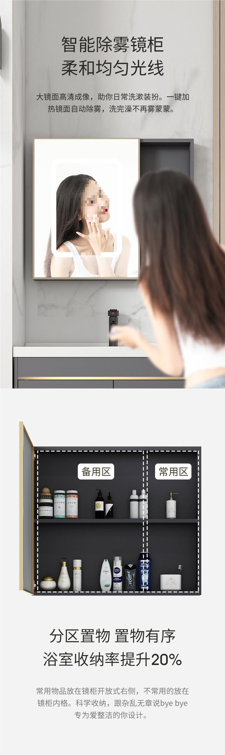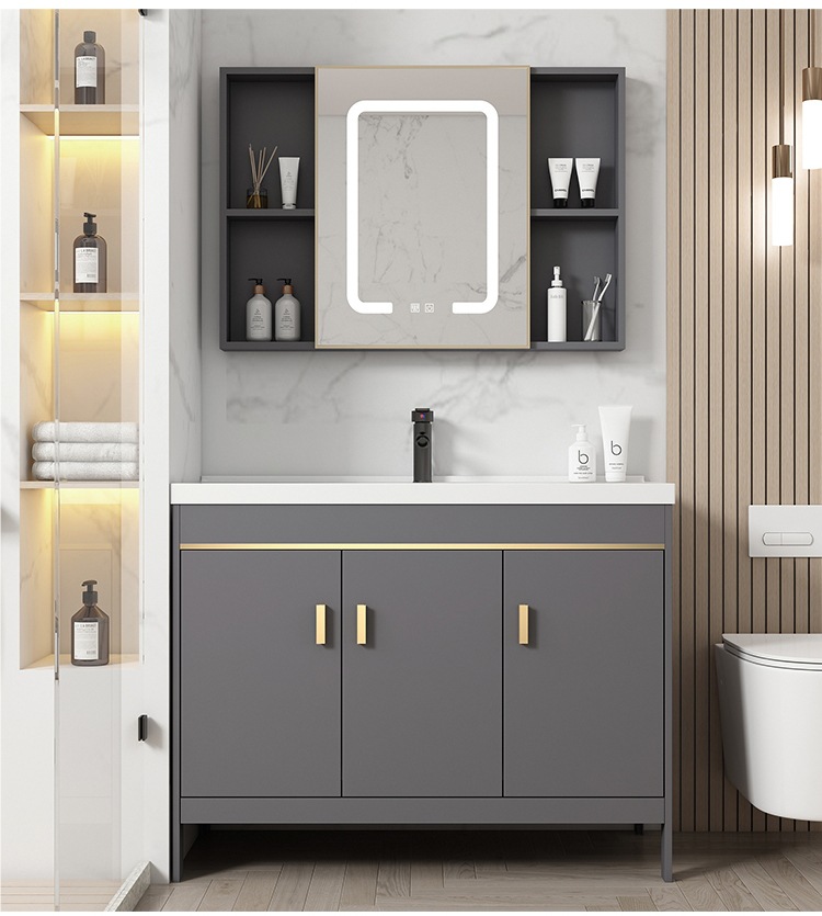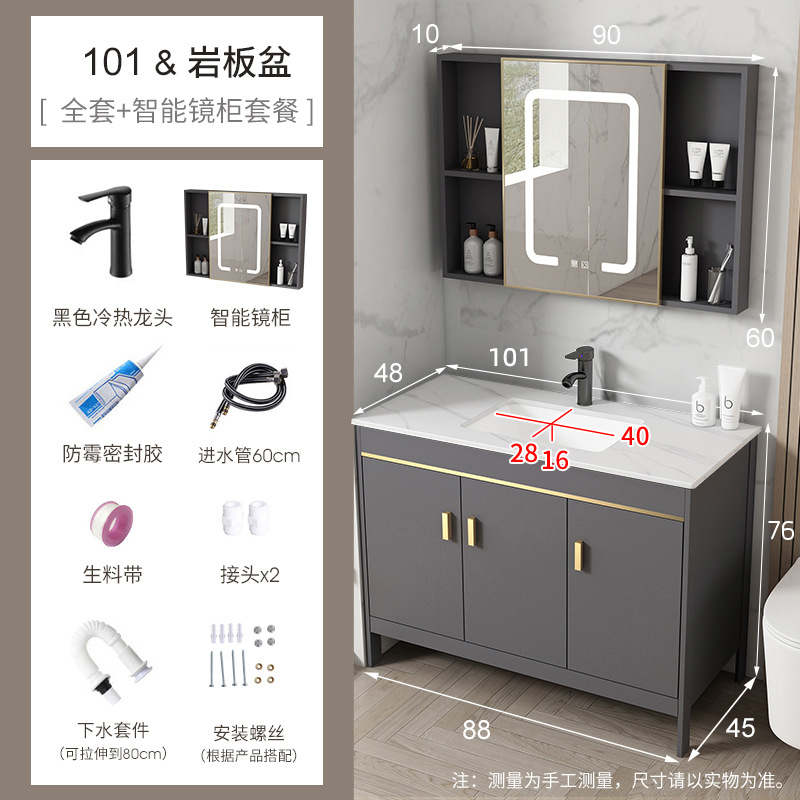 • 슬레이트 세면대 1m 그레이 골드 완전 밀폐형 바닥 + 스마트 거울 캐비닛