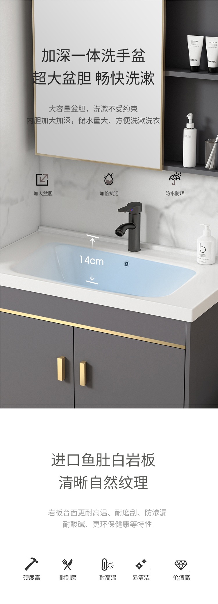 • 80 그레이 골드 완전 밀봉 바닥 + 거울 캐비닛 고온 세라믹 세면대