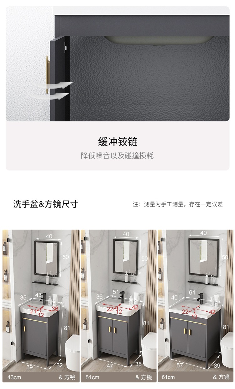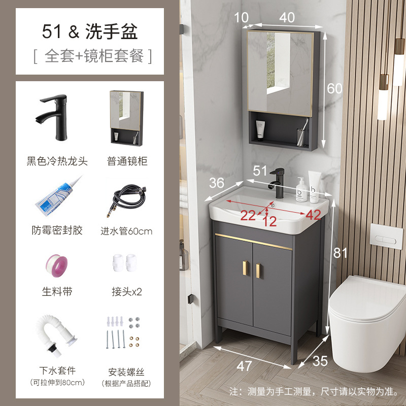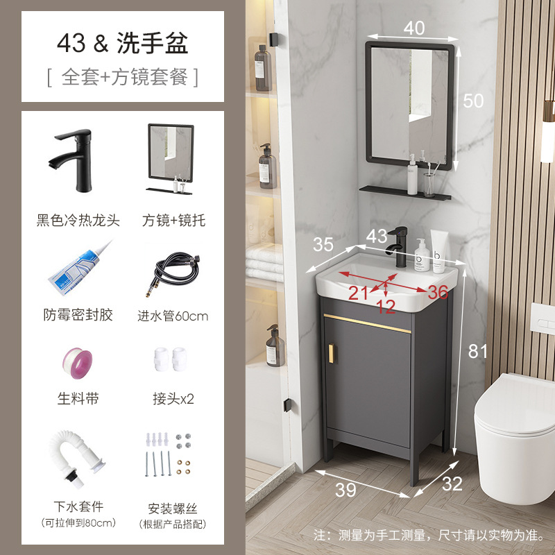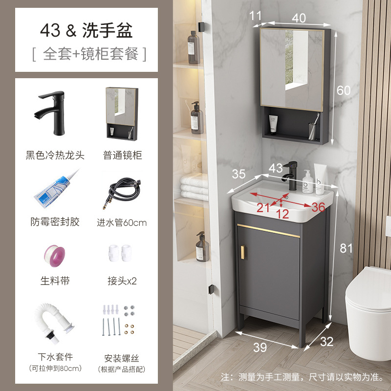 • 43 그레이 골드 완전 밀봉 바닥 + 거울 캐비닛 고온 세라믹 세면대