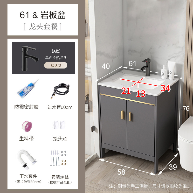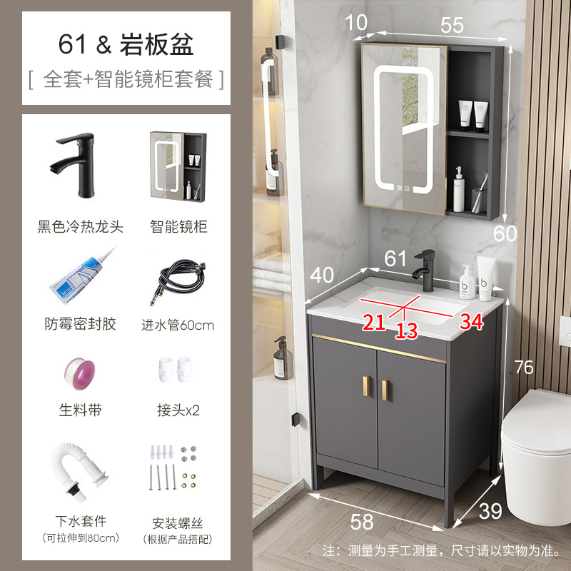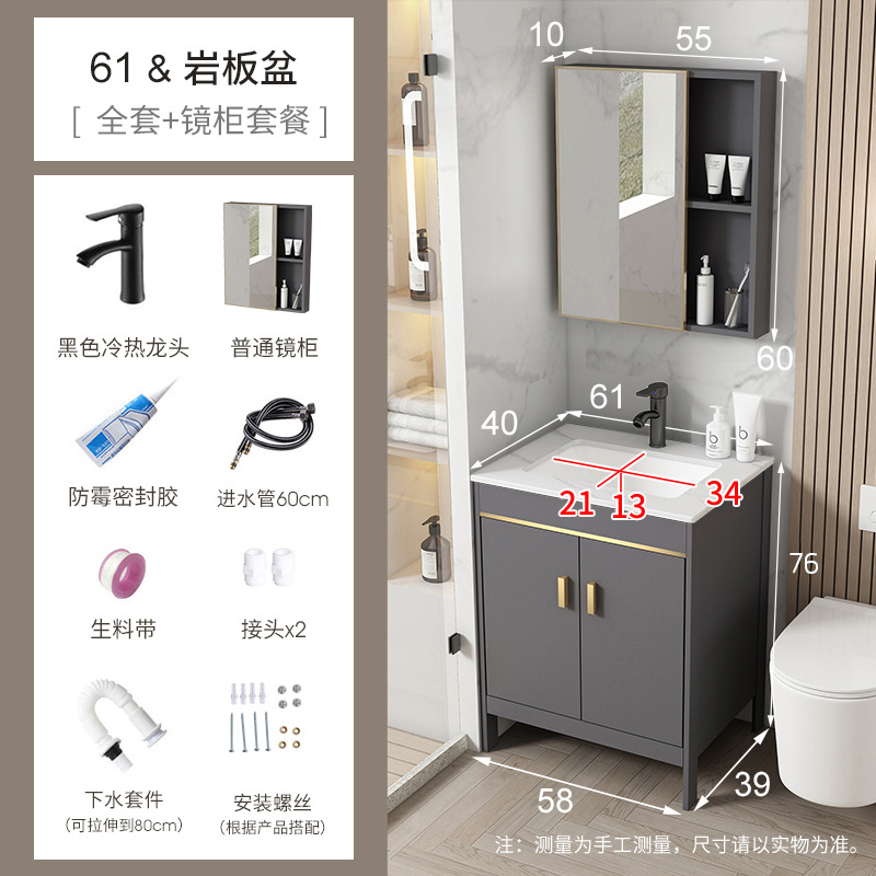 • 슬레이트 세면대 60 그레이 골드 완전 밀봉 플로어 스탠딩 + 거울 캐비닛
