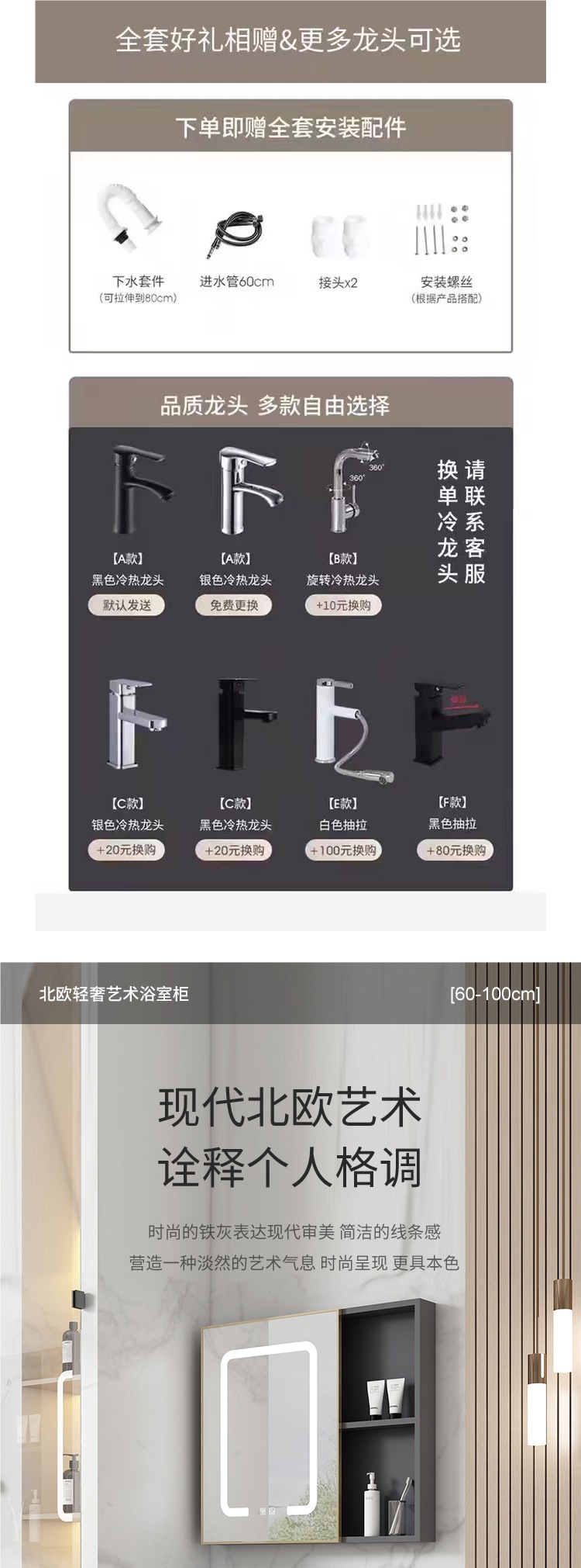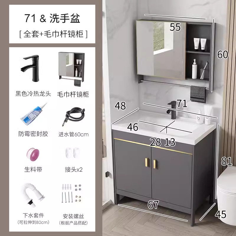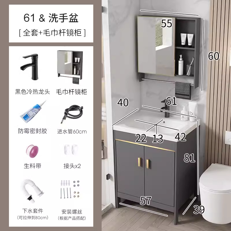 • 60 그레이 골드 완전 밀봉 바닥 + 수건 걸이 거울 캐비닛 고온 세라믹 세면대