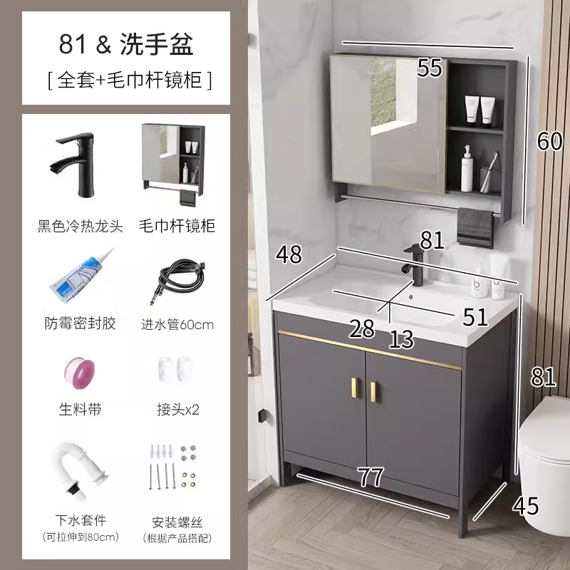 • 80 그레이 골드 완전 밀봉 바닥 + 수건 걸이 거울 캐비닛 고온 세라믹 세면대