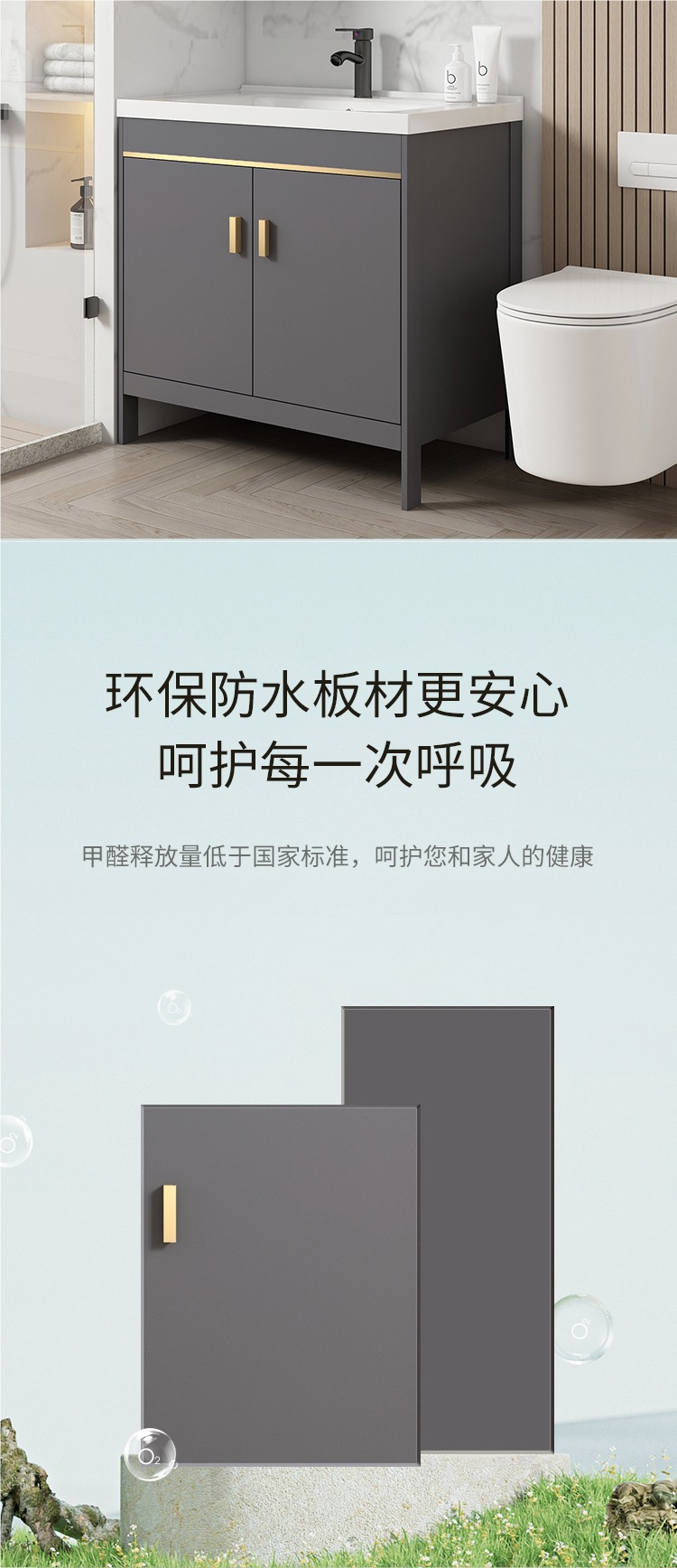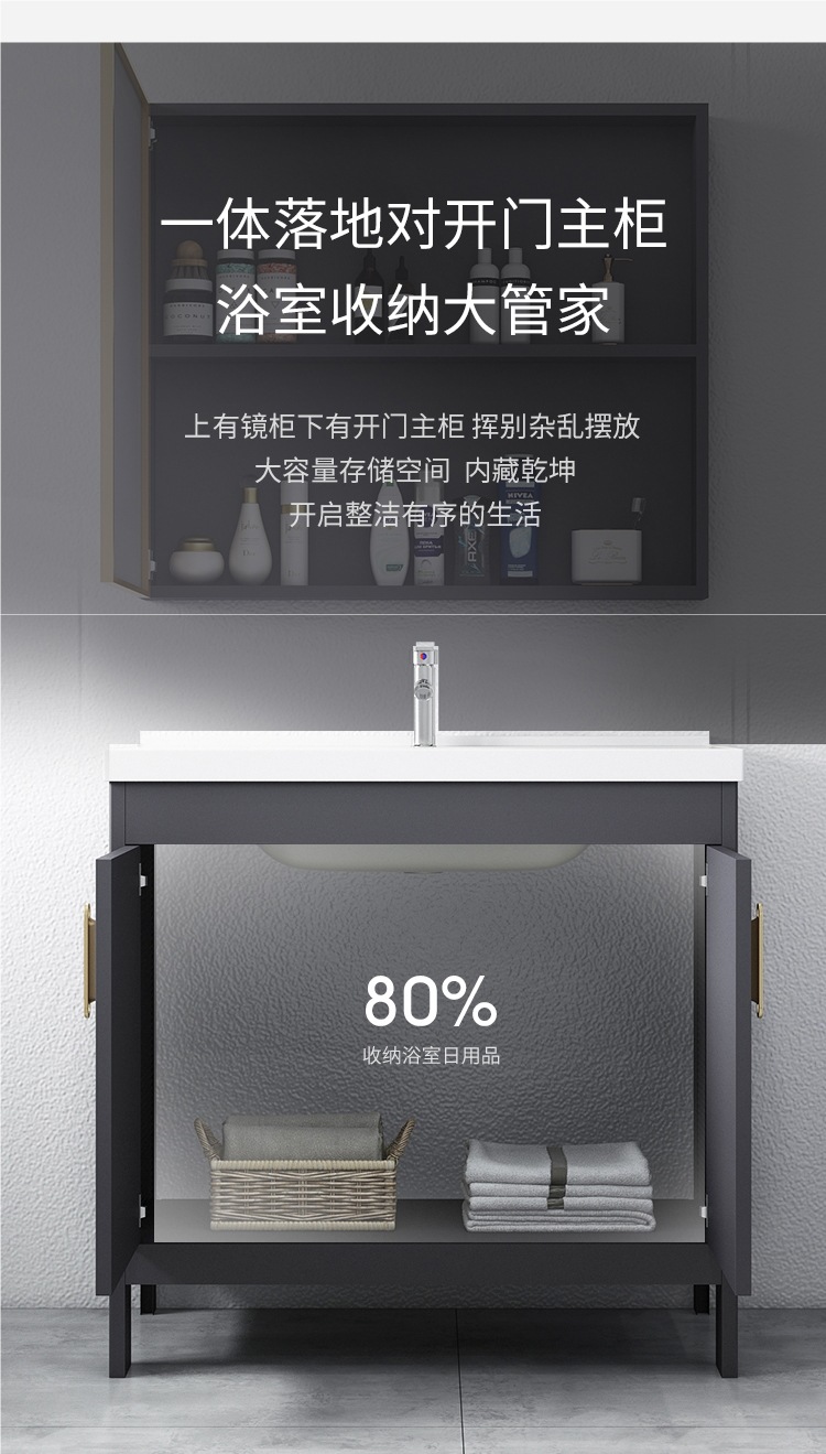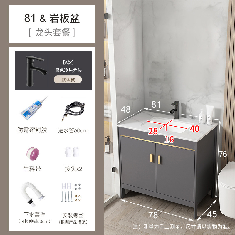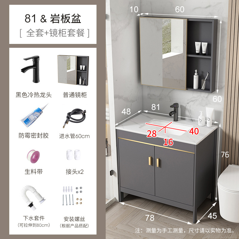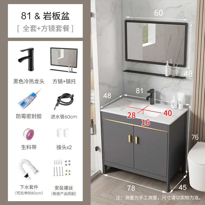 • 슬레이트 세면대 80 그레이 골드 완전 밀봉 플로어 스탠딩 + 거울 캐비닛
