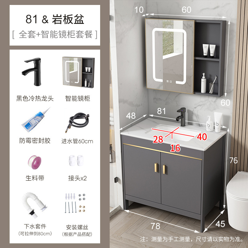 • 슬레이트 세면대 80 그레이 골드 완전 밀봉 플로어 스탠딩 + 스마트 거울 캐비닛