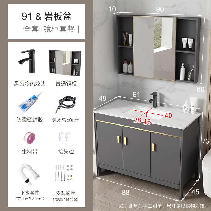 • 슬레이트 세면대 90 그레이 골드 완전 밀봉 플로어 스탠딩 + 거울 캐비닛