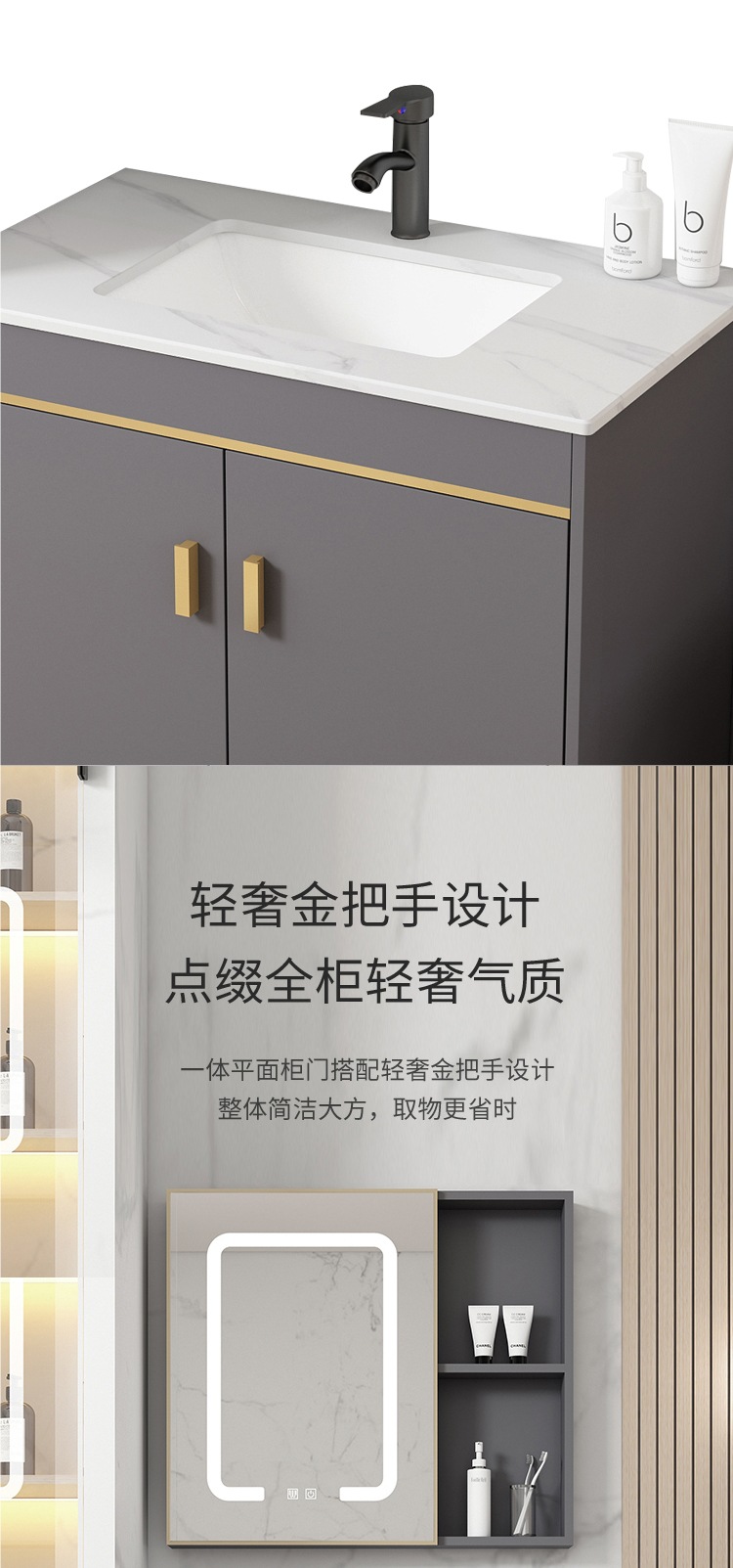• 슬레이트 세면대 60 그레이 골드 완전 밀봉 플로어 스탠딩 + 스마트 거울 캐비닛